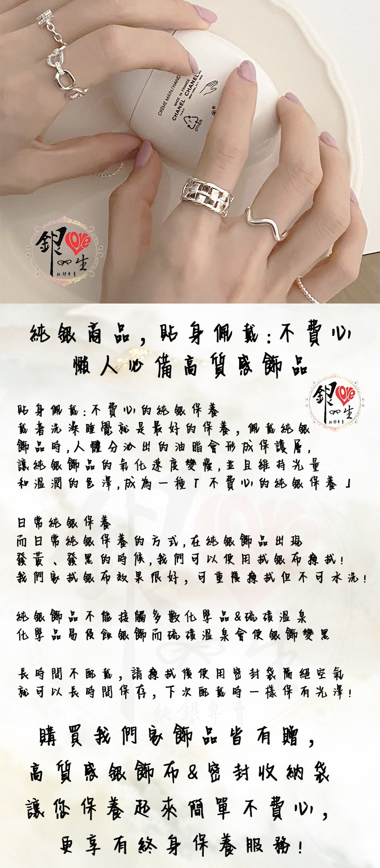 • 鏡面拋光,細緻光滑,金屬部分皆為925純銀,敏感肌膚均可安心,配戴舒適