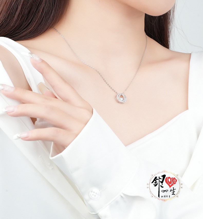 商品名稱 : 銀愛一生 s925純銀項鍊 璀璨躍動 雙環相扣項鍊