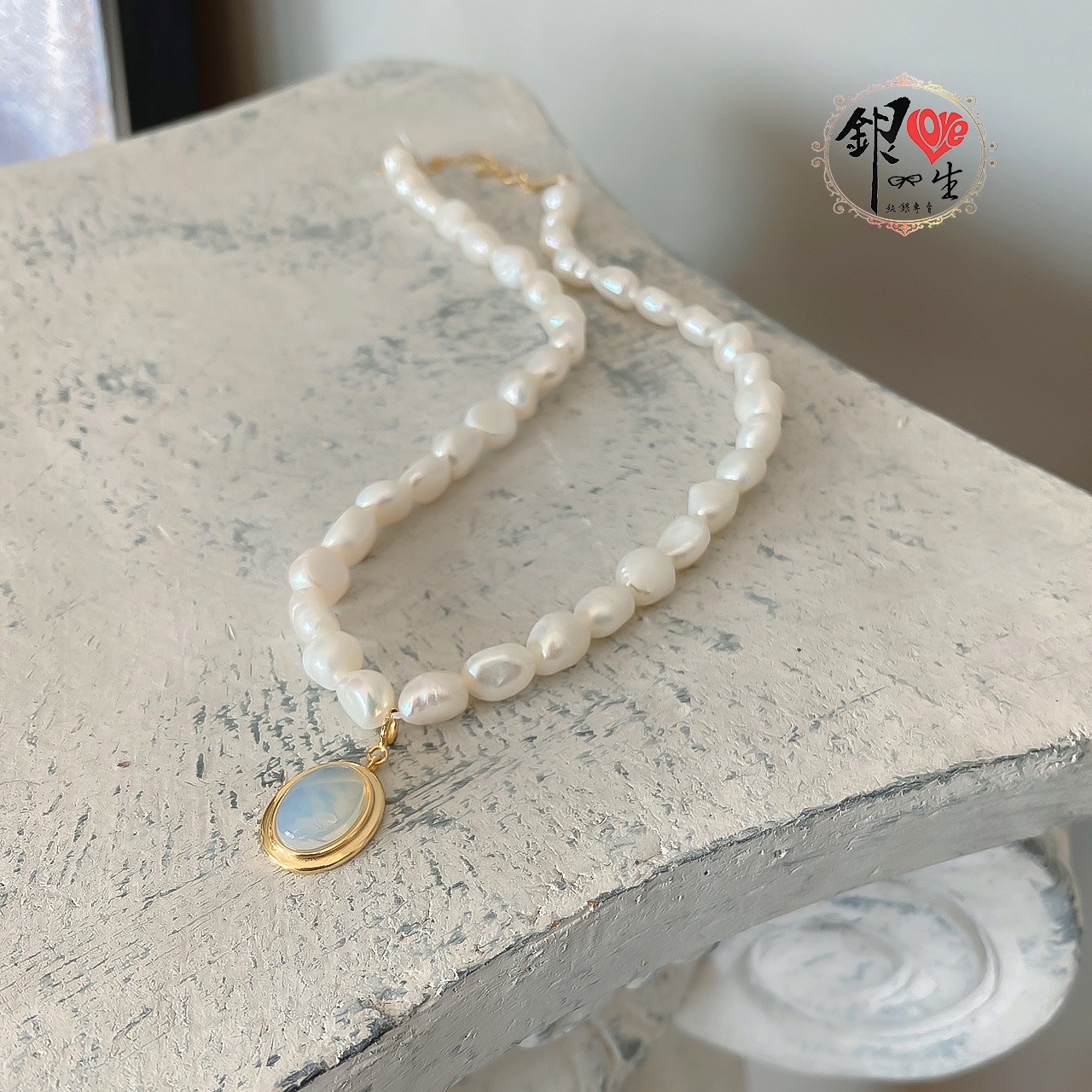 商品名稱 : 銀愛一生 s925純銀項鍊 巴洛克珍珠月光石項鍊