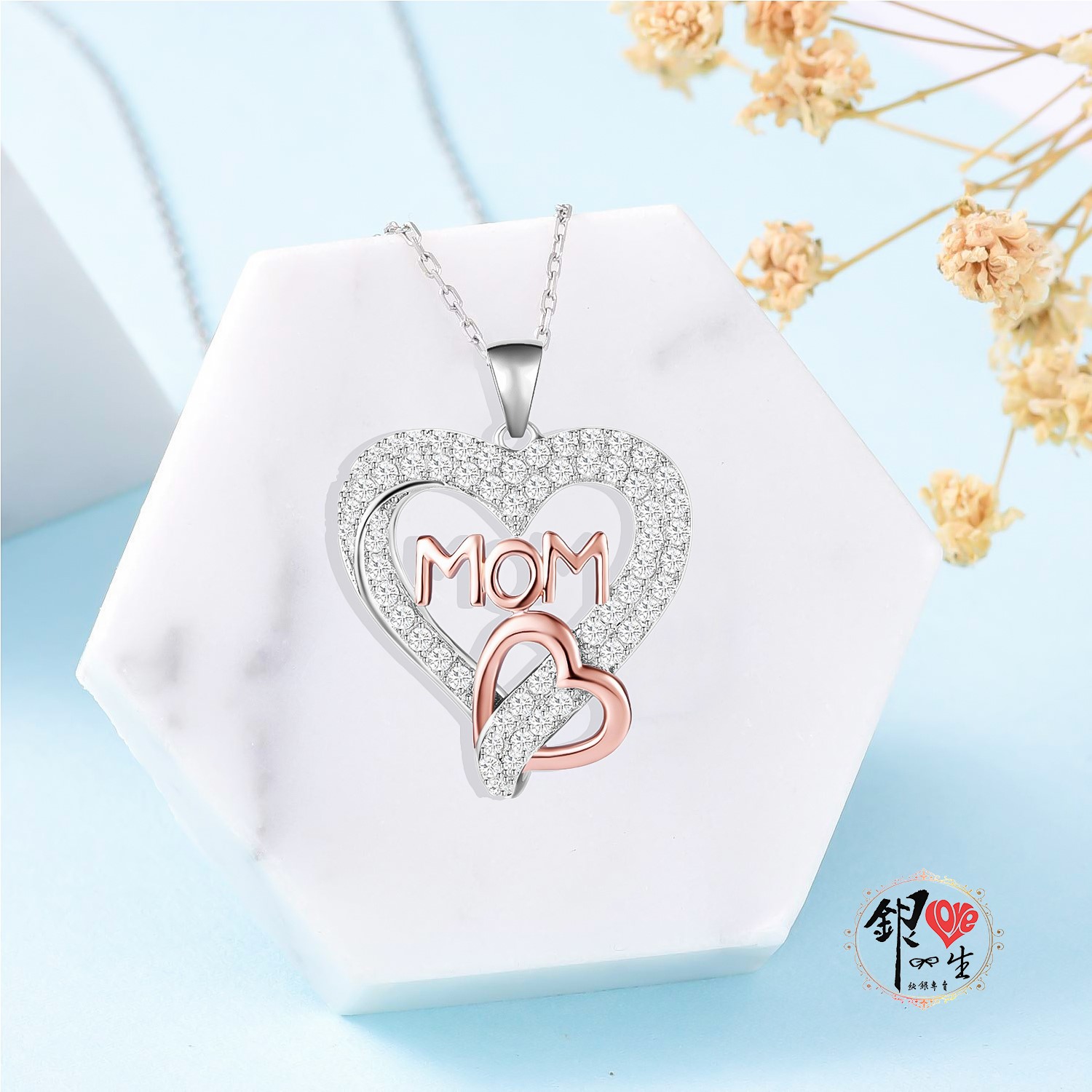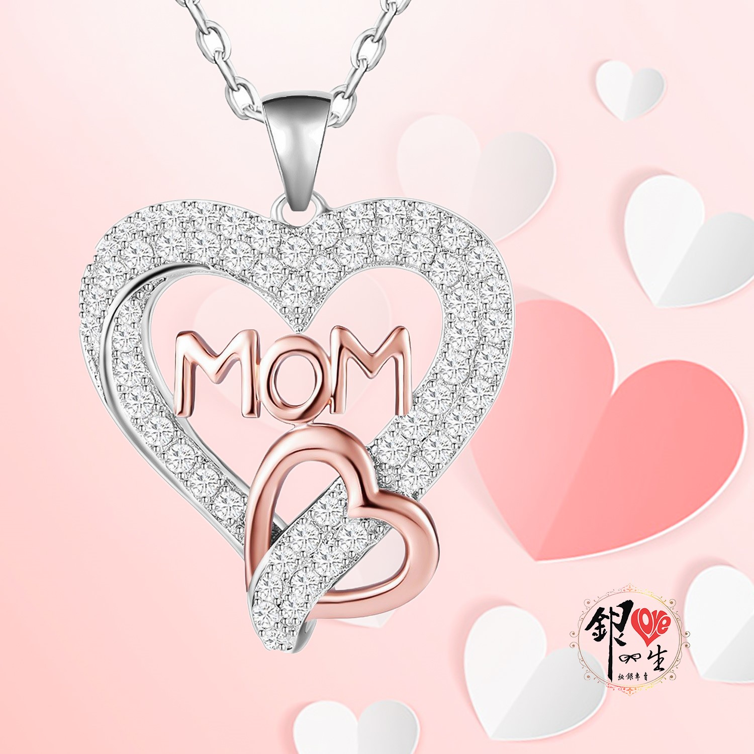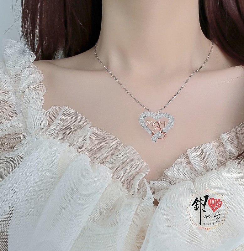 商品名稱 : 銀愛一生 s925純銀項鍊 原創MOM心心相印