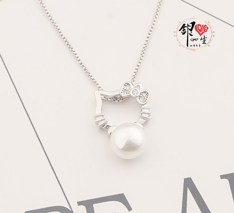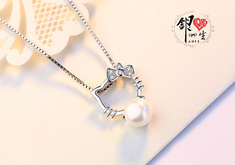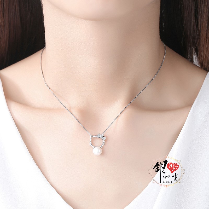商品名稱 : 銀愛一生 s925純銀項鍊 天然珍珠-凱蒂貓