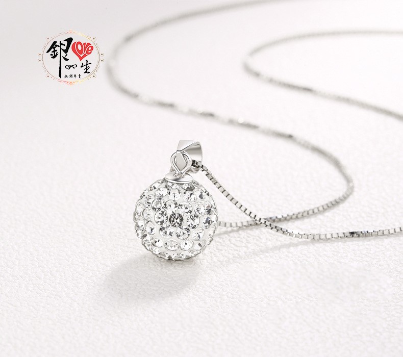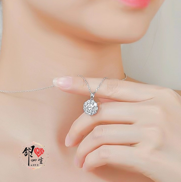 商品名稱 : 銀愛一生 s925純銀項鍊 滿鑽閃亮香巴拉項鍊