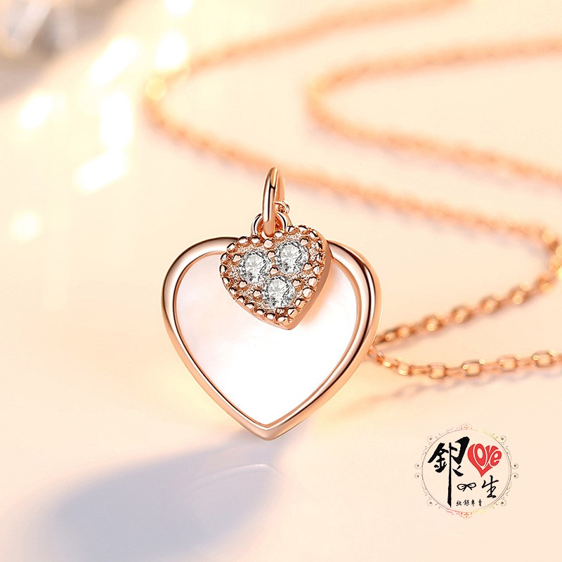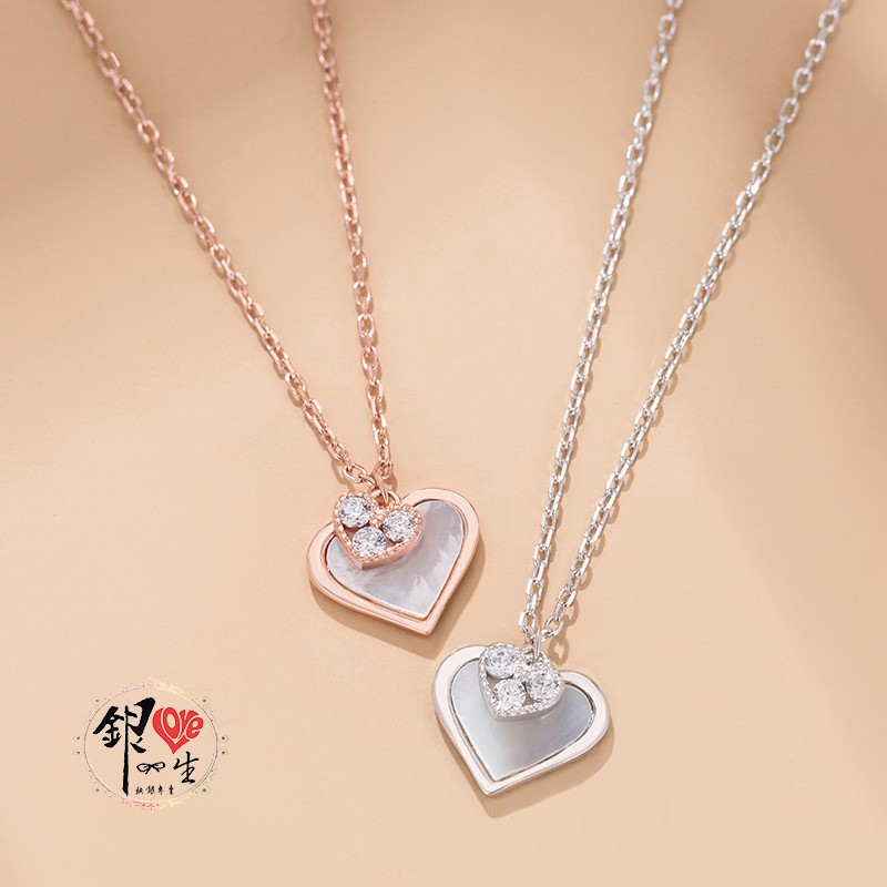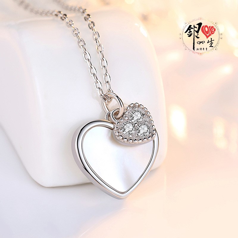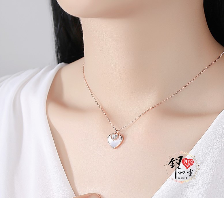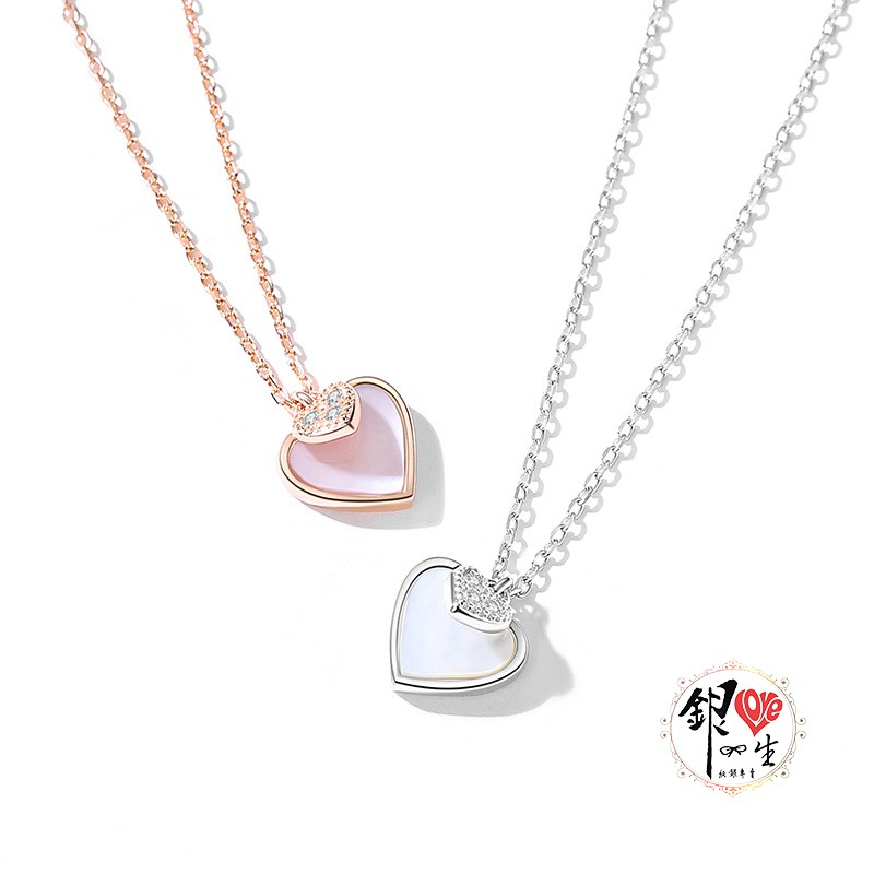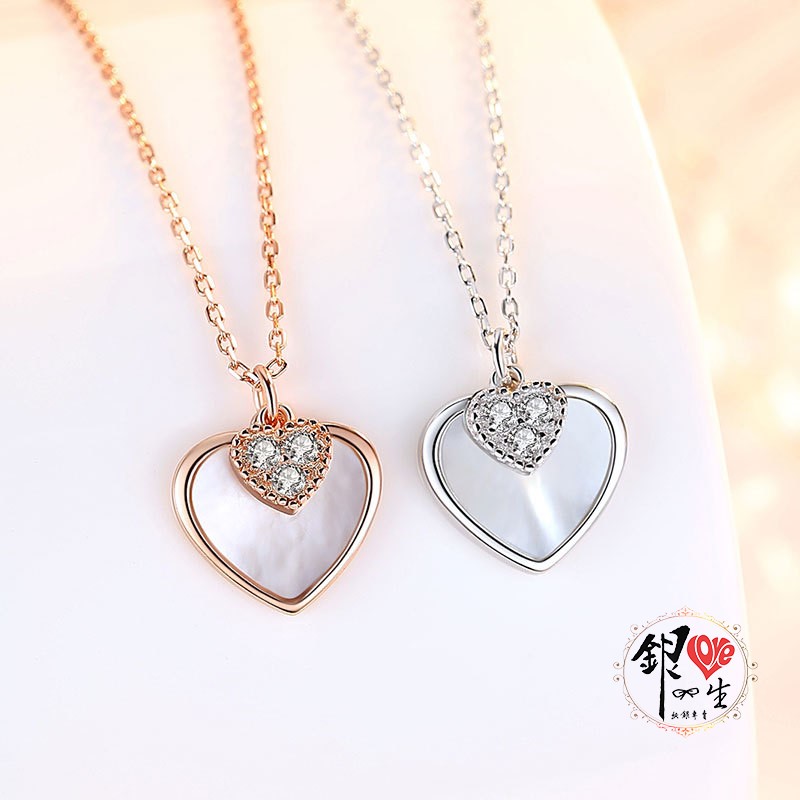 商品名稱 : 銀愛一生 s925純銀貝殼項鍊 心心相印