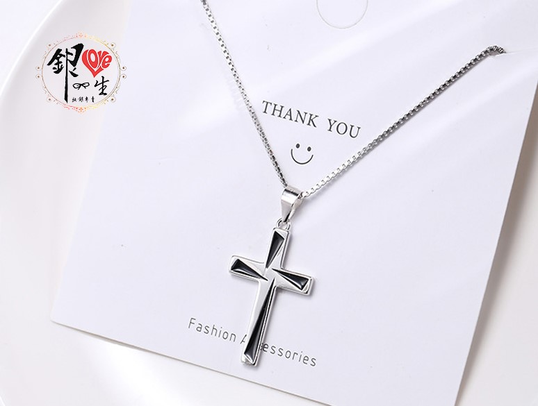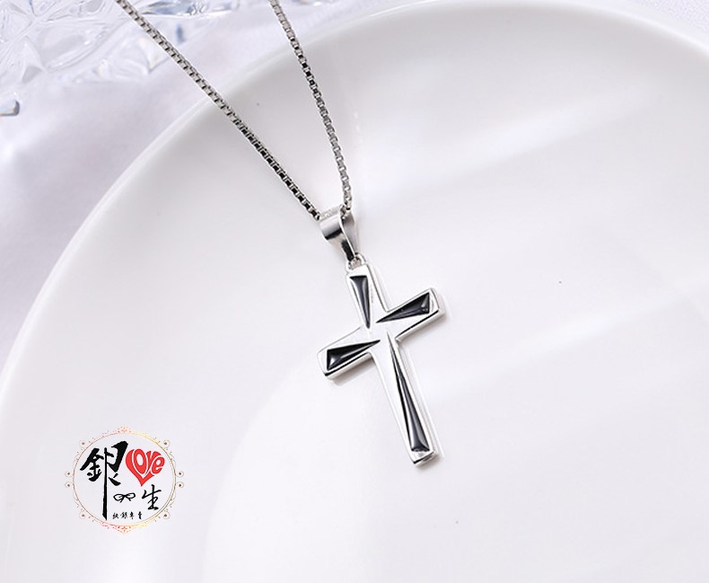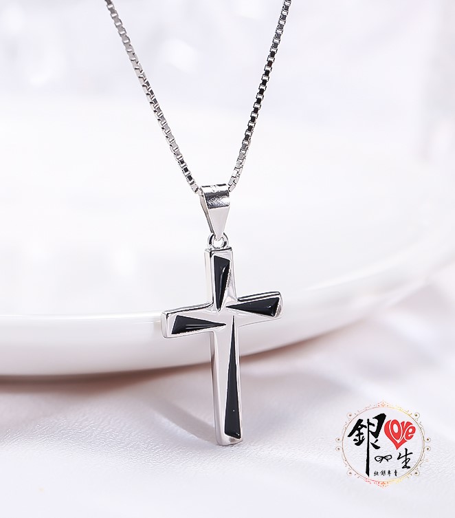商品名稱 : 銀愛一生 s925純銀項鍊 十字架 幾何黑 項鍊