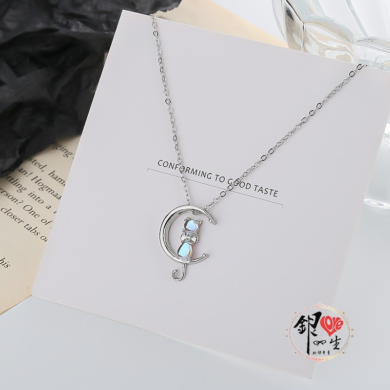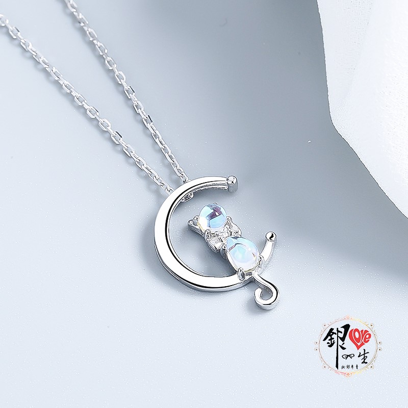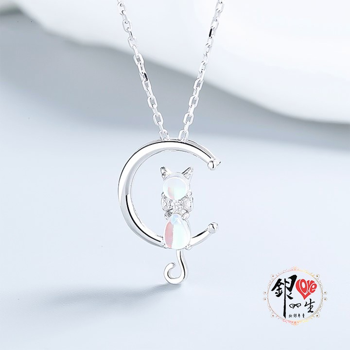 商品名稱 : 銀愛一生 s925純銀項鍊 月光石喵咪