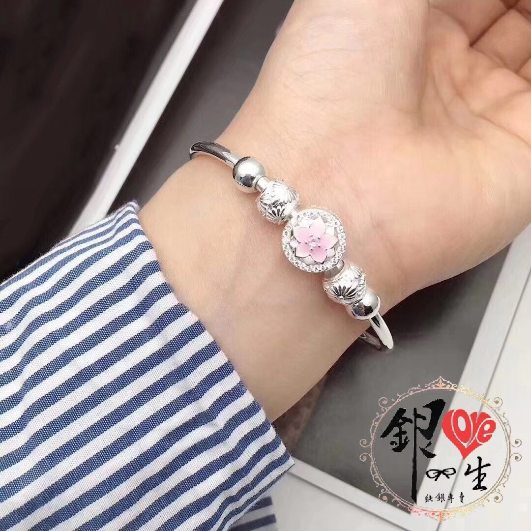 商品名稱 : 銀愛一生s999純銀 粉色小花精緻串珠式 手鐲