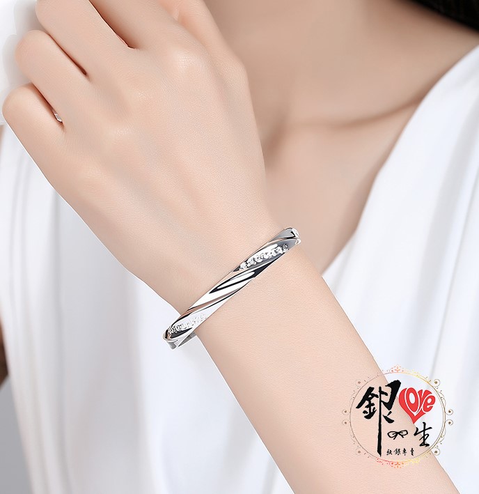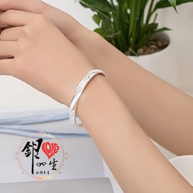 s999純銀 六字真言 曲線造型 心經 手鐲
