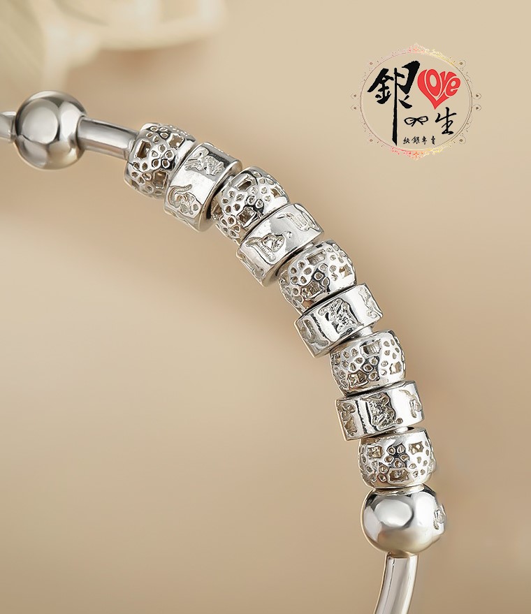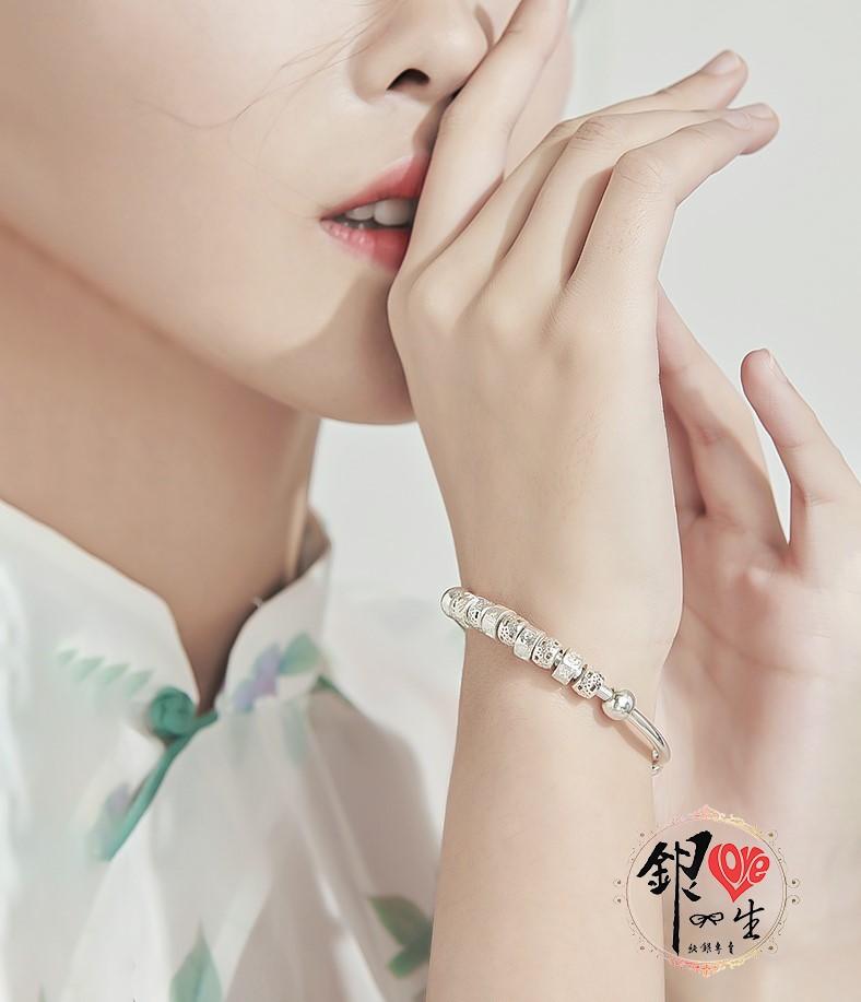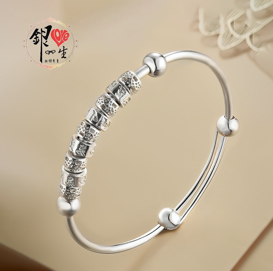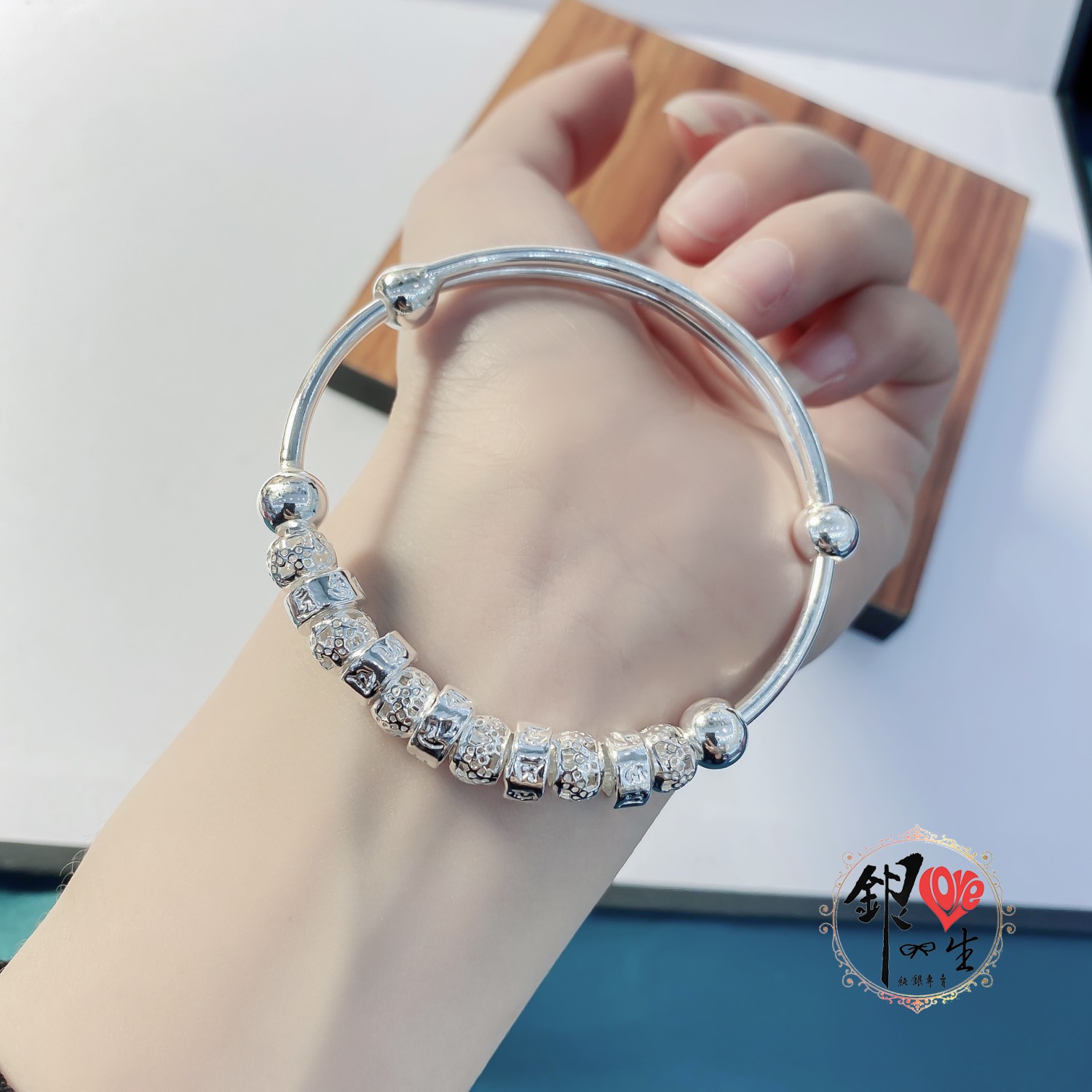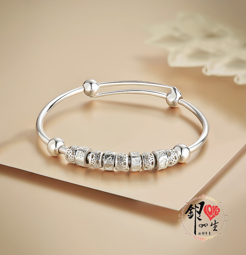 商品名稱 : 銀愛一生s999純銀 六字真言 轉運珠 推拉手鐲