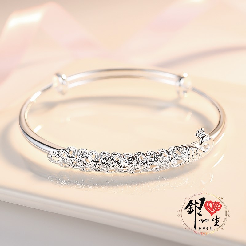 商品名稱 : 銀愛一生s999純銀 中國風 孔雀造型 推拉手鐲