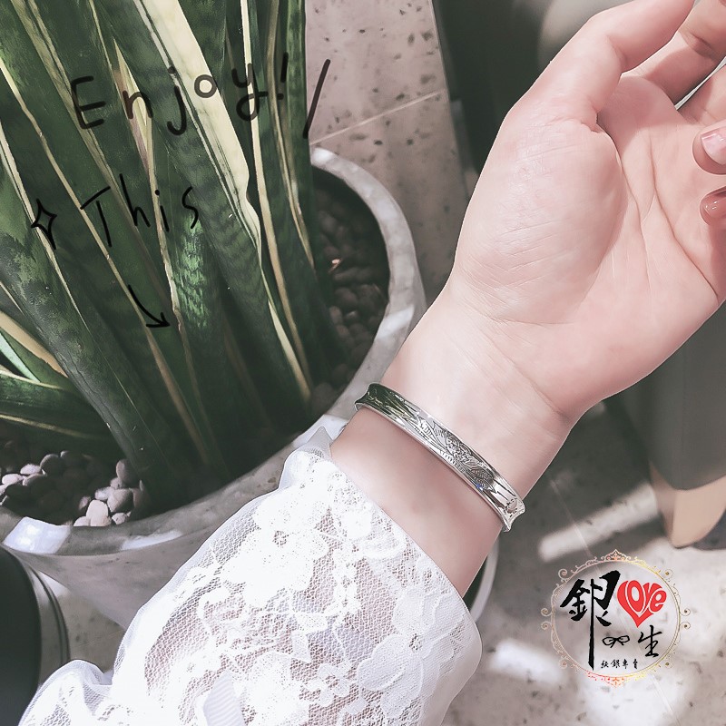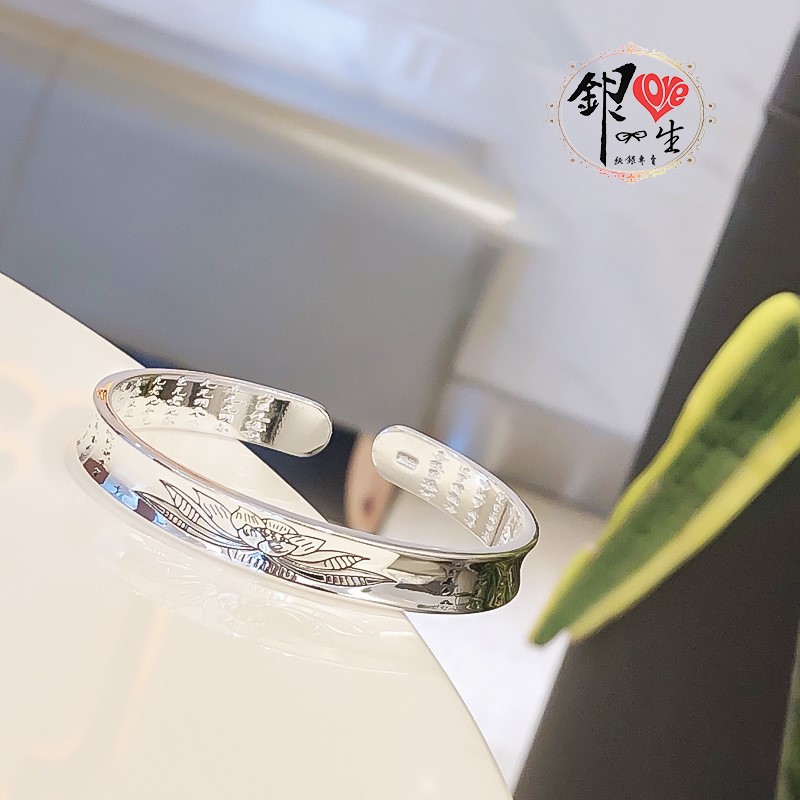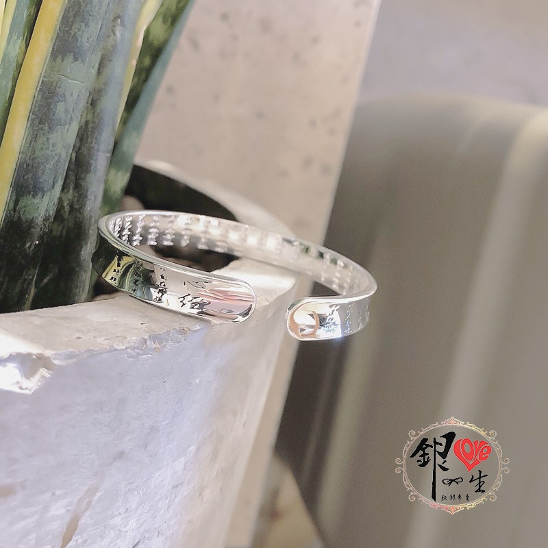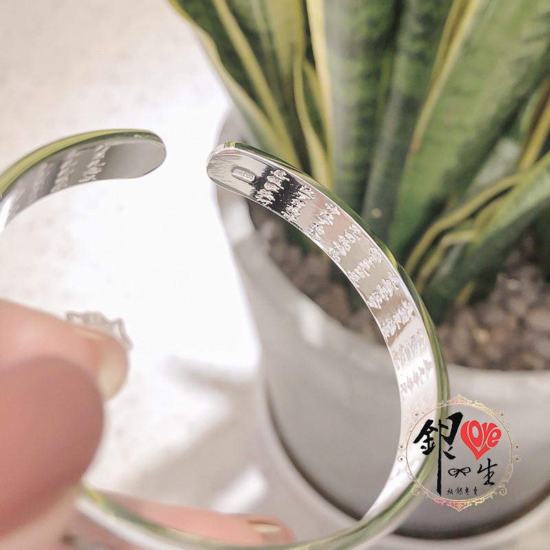 商品名稱 : 銀愛一生s999純銀 六字真言 凹面造型 蓮花手刻心經 手鐲