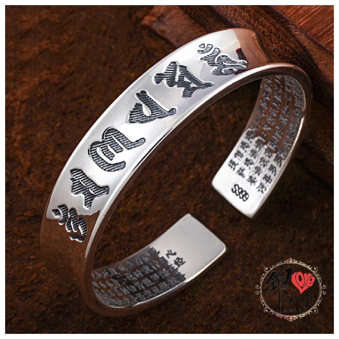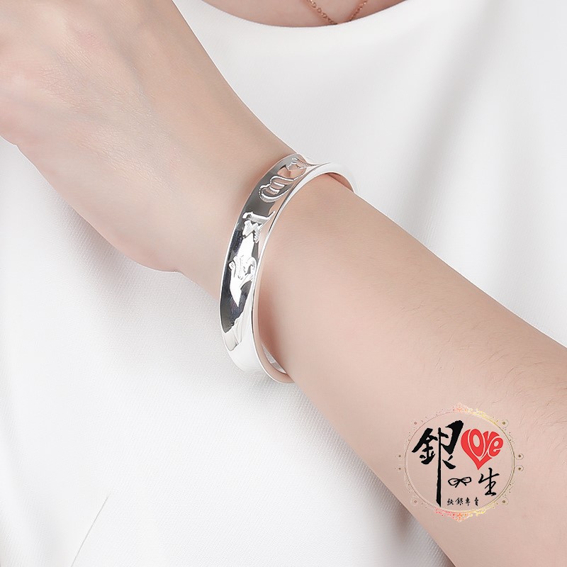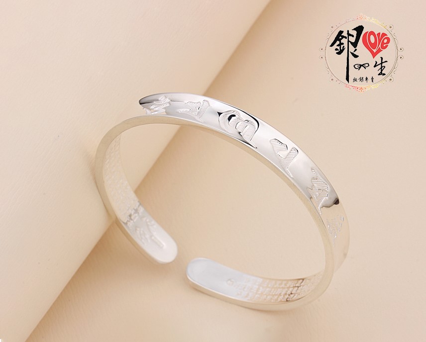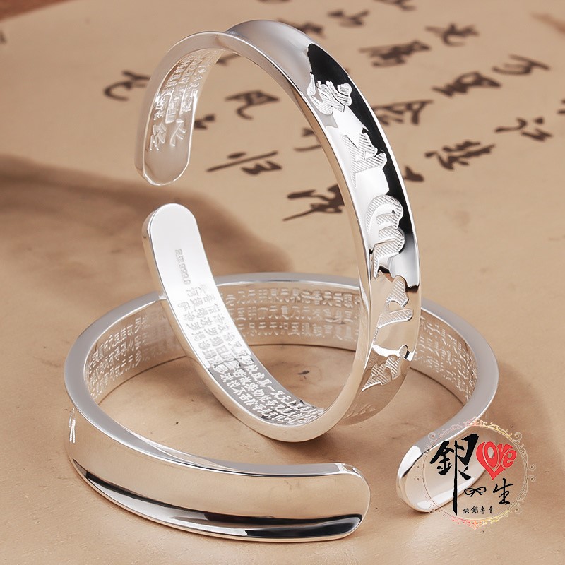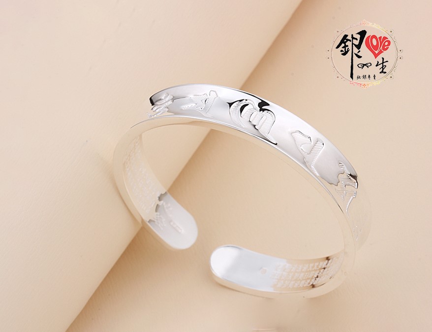 商品名稱 : 銀愛一生s999純銀 六字真言 凹面造型 蓮花手刻心經 手鐲