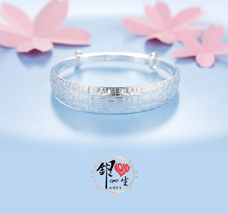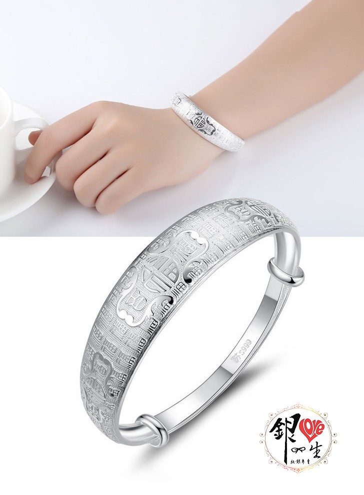 商品名稱 : 銀愛一生s999純銀 百福 吉祥如意 推拉手鐲