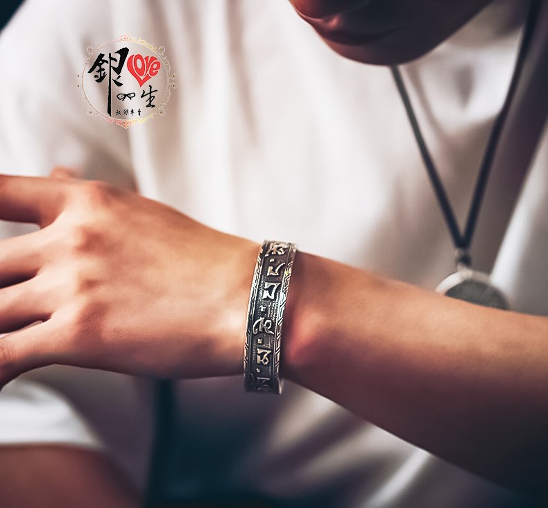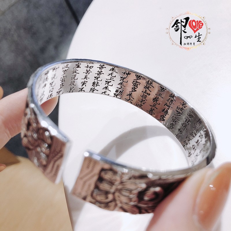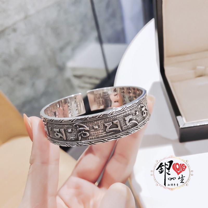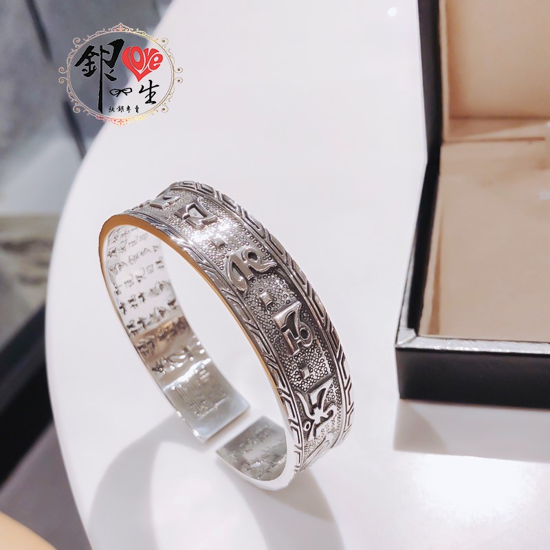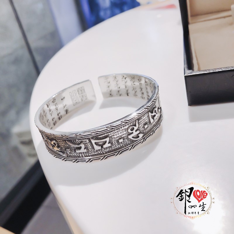 商品名稱 : 銀愛一生s999純銀 六字真言 手刻心經 個性 男版手鐲