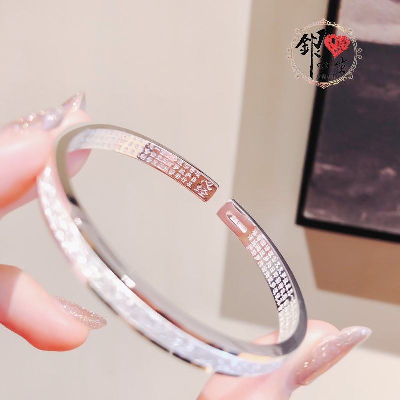 商品名稱 : 銀愛一生s999純銀 六字真言 漸層噴砂簡約心經 手鐲