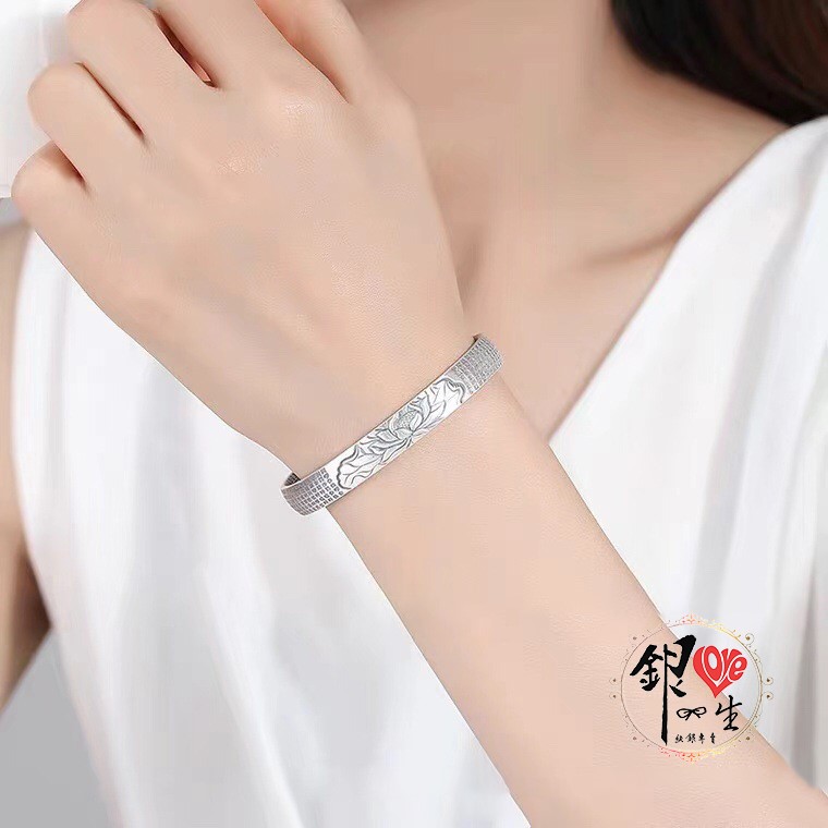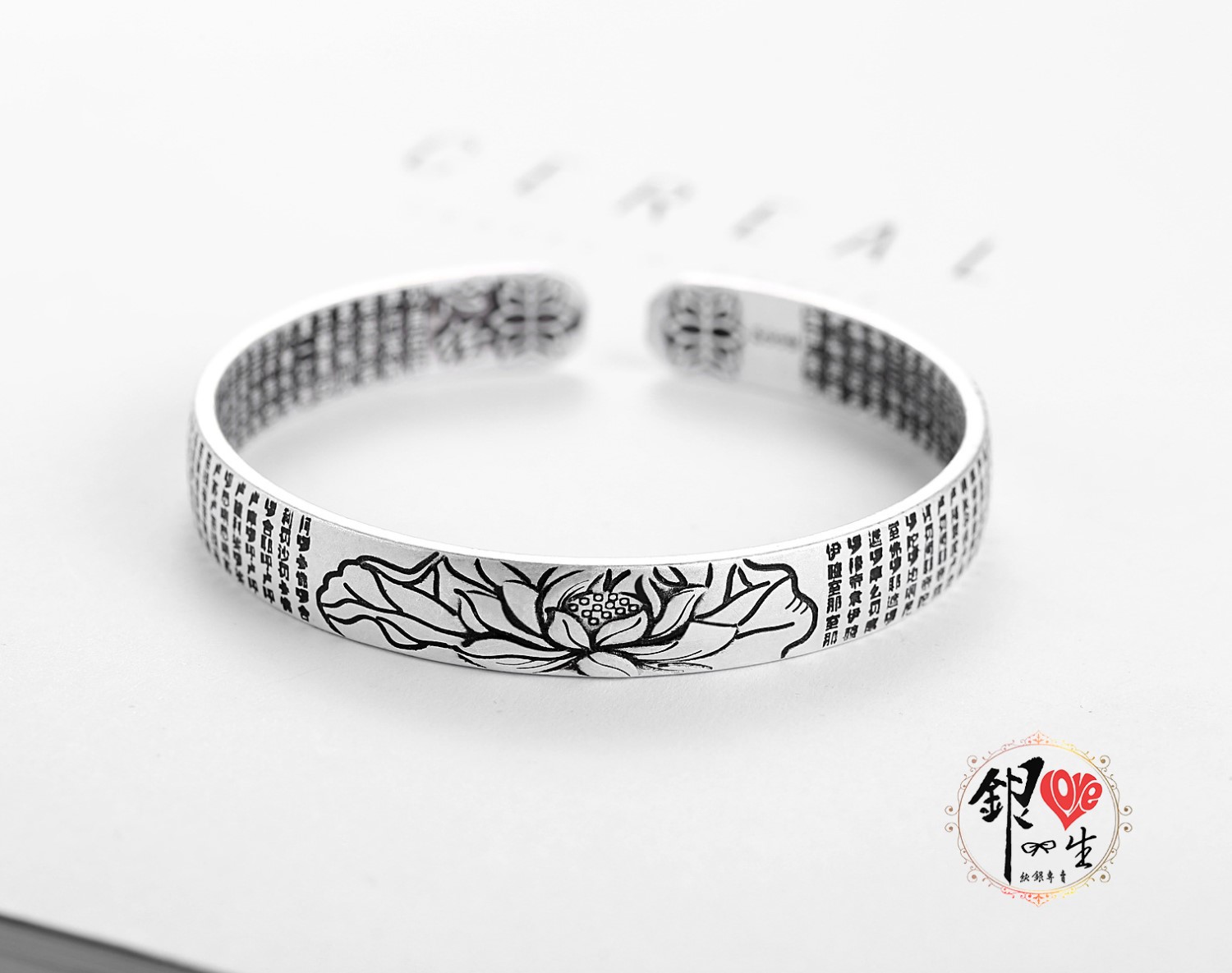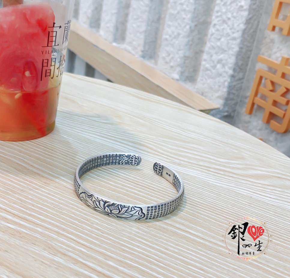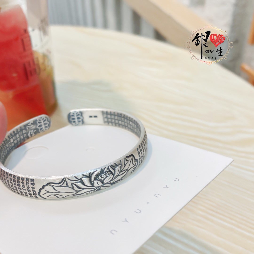 商品名稱 : 銀愛一生s999純銀 六字真言 圓面造型 蓮花復古心經 手鐲