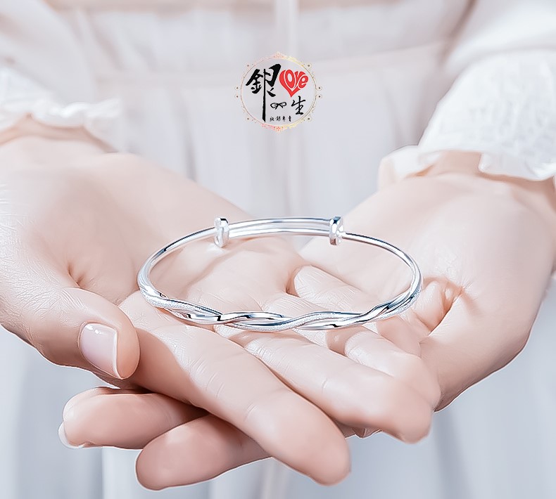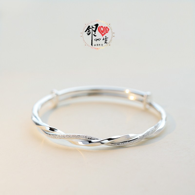 s999純銀 噴砂交織 莫比烏斯 時尚 推拉手鐲