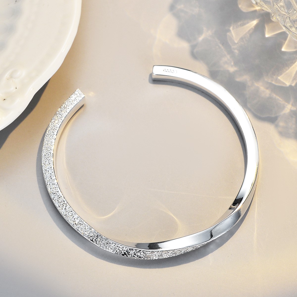 s999純銀 噴砂扭曲 ∞ 時尚 手鐲