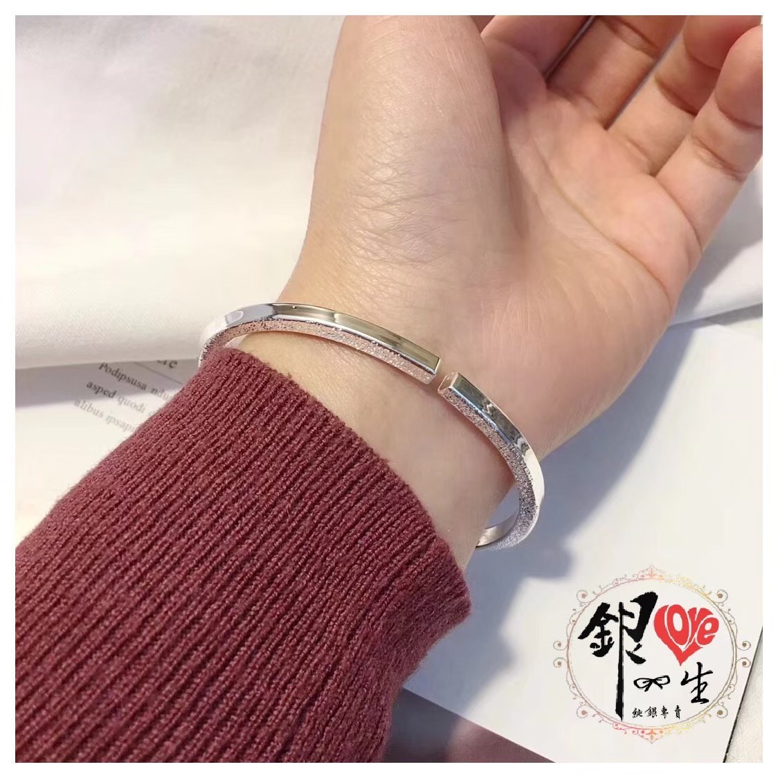 商品名稱 : 銀愛一生ss999純銀 噴砂扭曲 ∞ 時尚 手鐲
