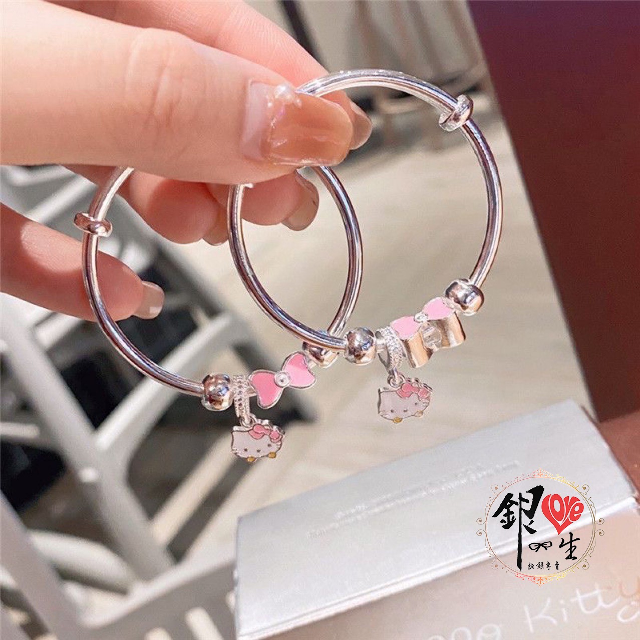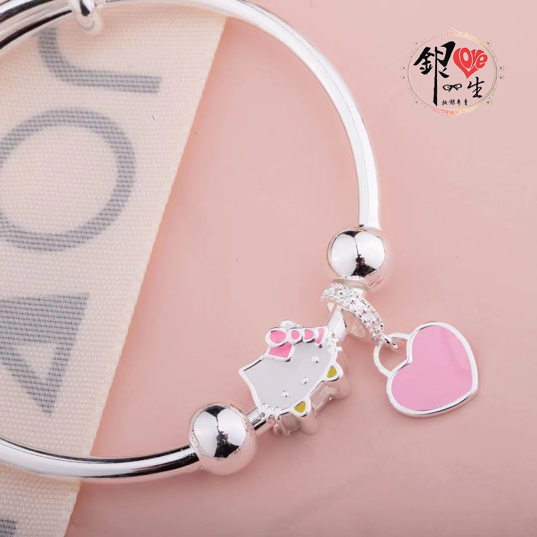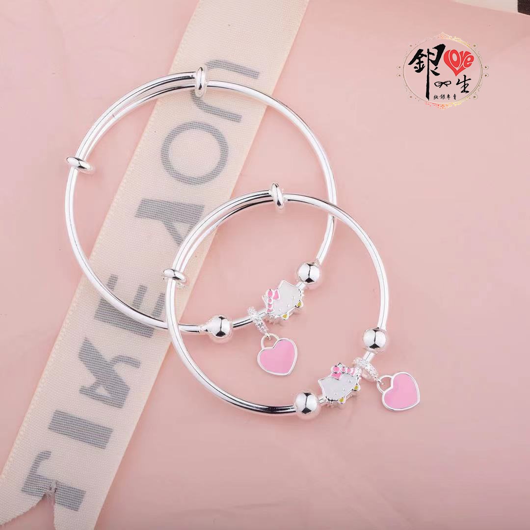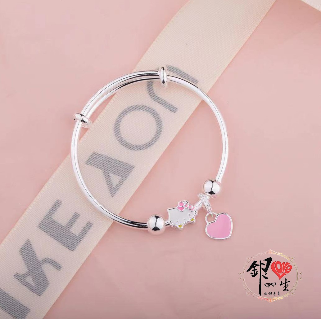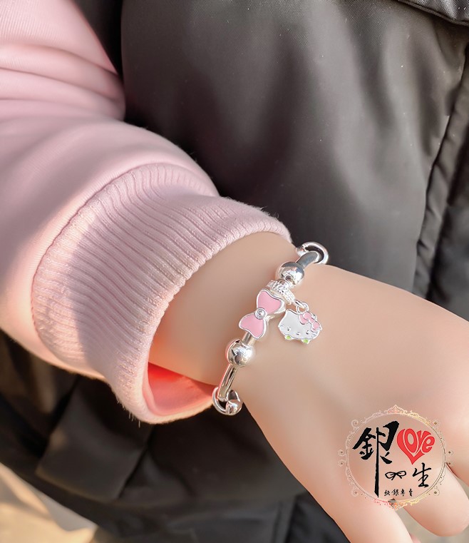 商品名稱 : 銀愛一生s999純銀 可愛貓 粉色蝴蝶結 超Q 推拉童鐲