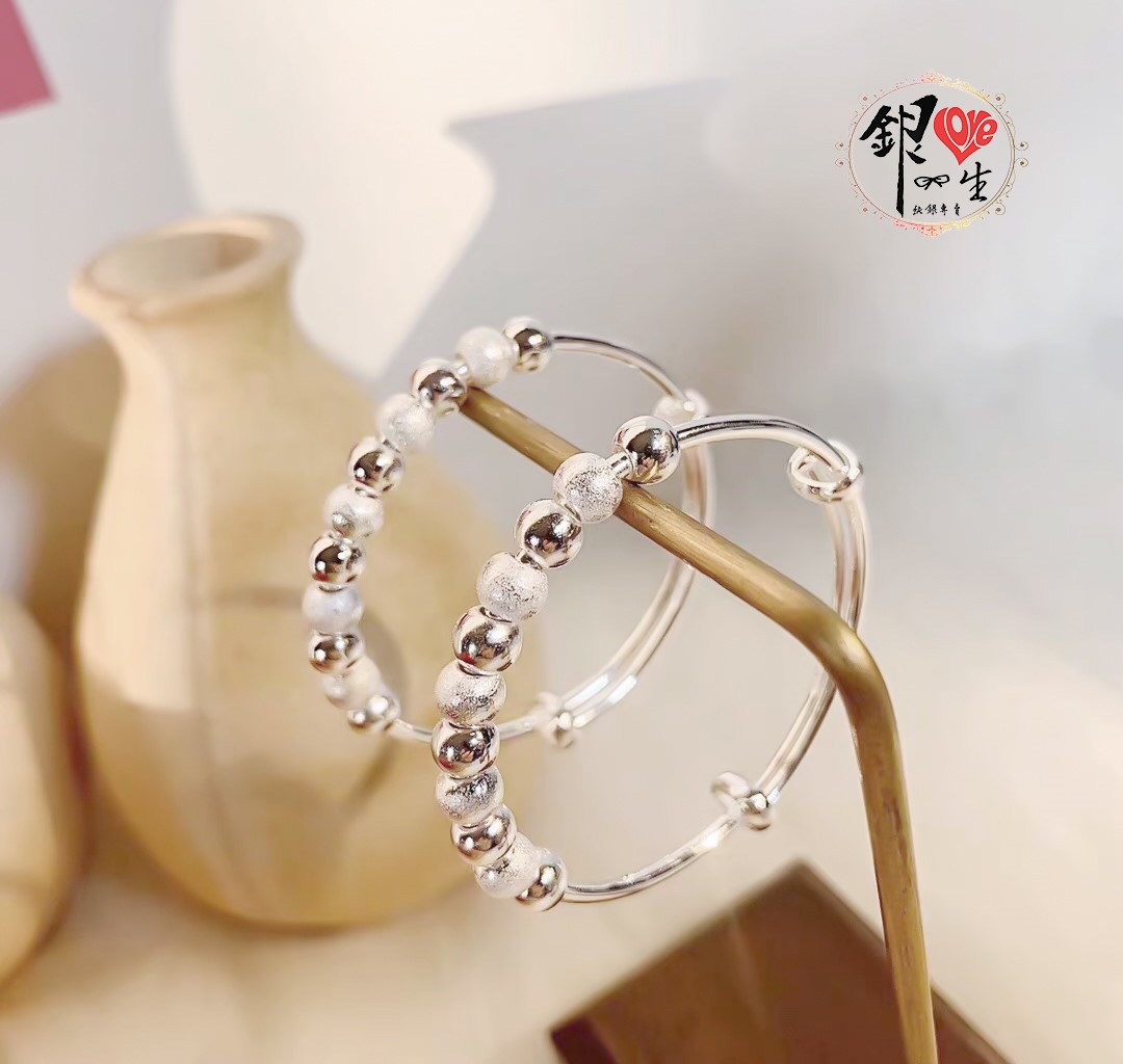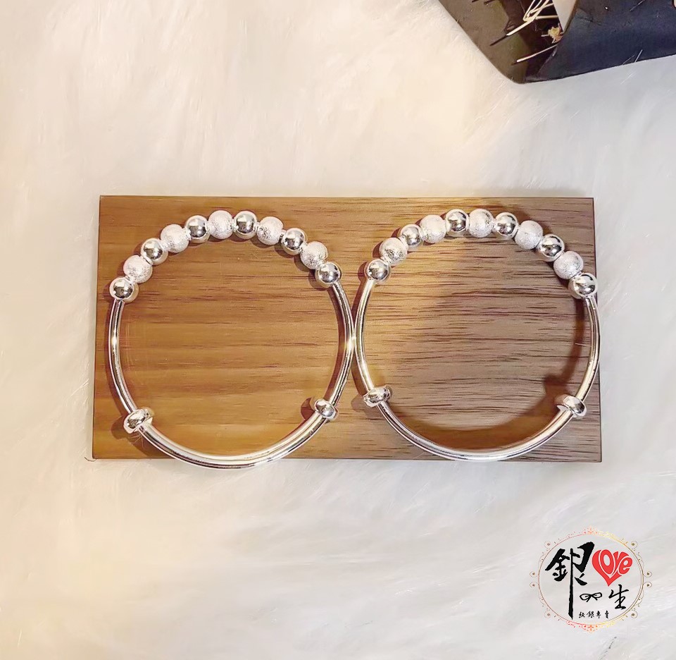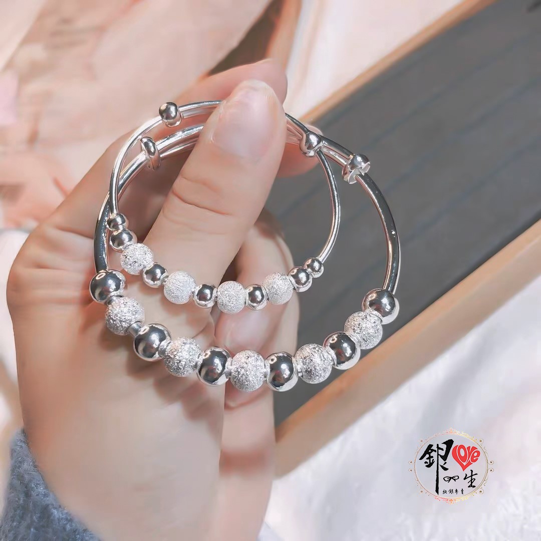 商品名稱 : 銀愛一生s999純銀 磨砂光珠 超Q 男女 推拉童鐲