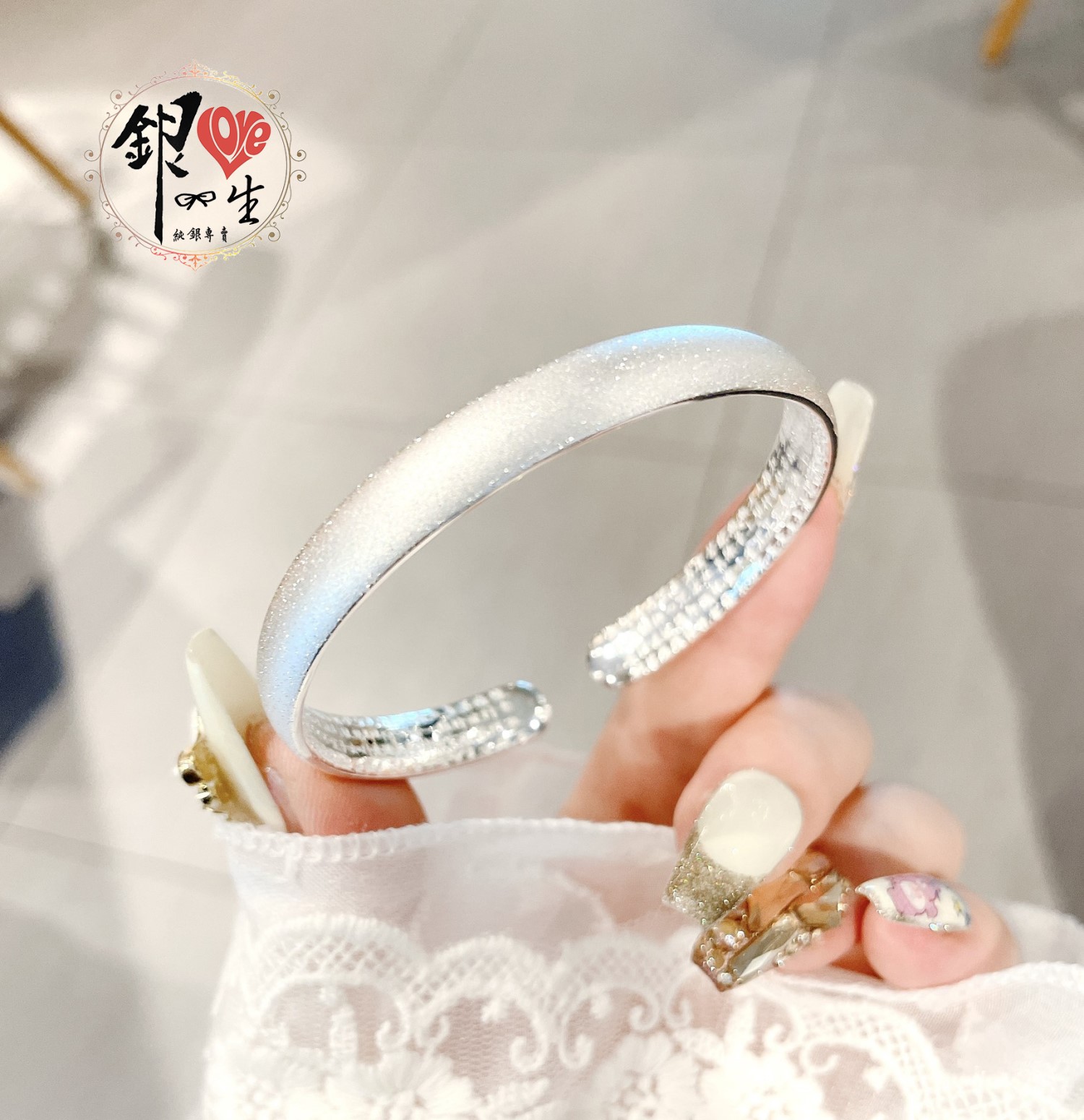 商品名稱 : 銀愛一生s999純銀 閃砂 素面 心經 手鐲