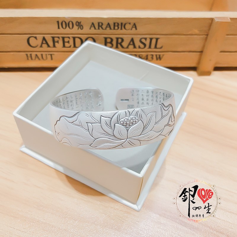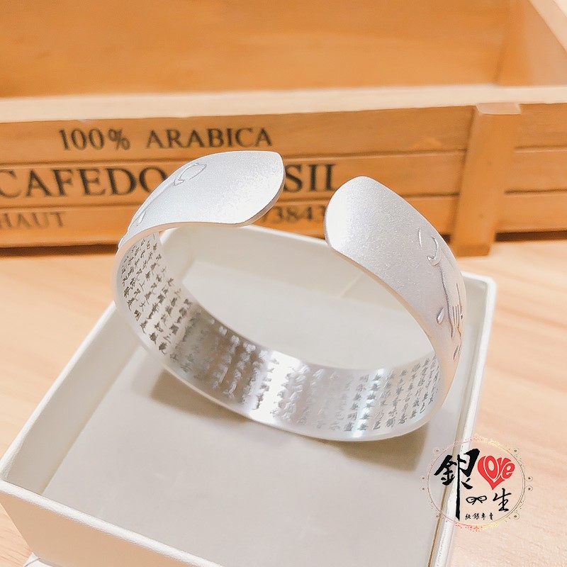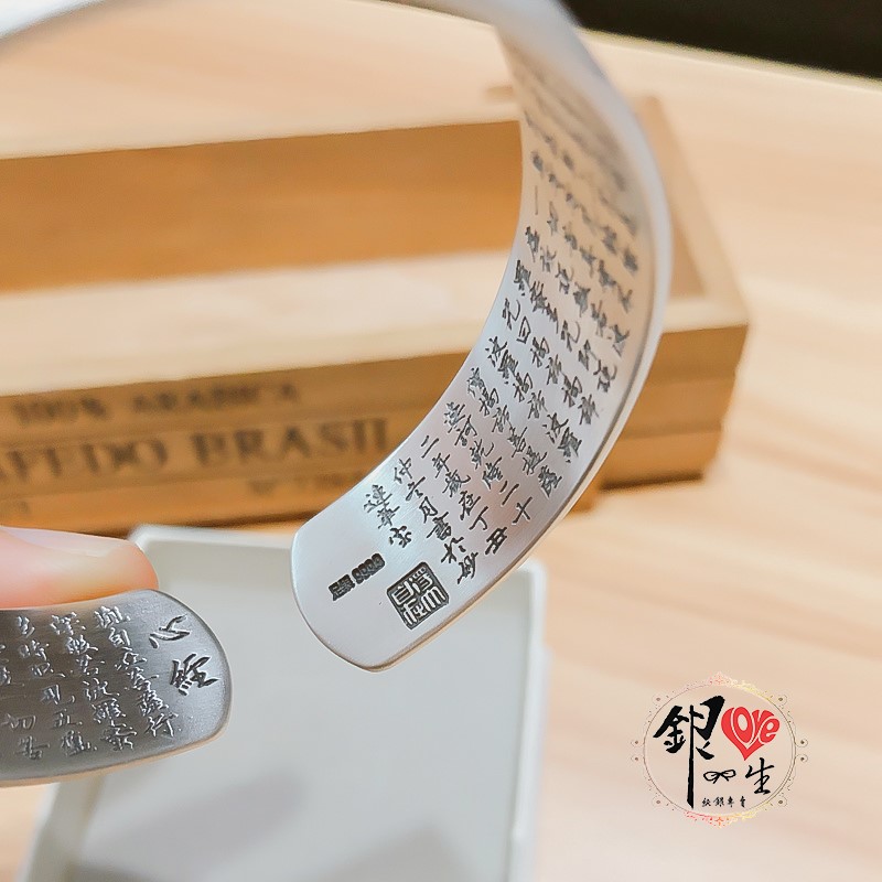 商品名稱 : 銀愛一生s999純銀 六字真言 噴砂 寬版 手刻佛手蓮花復古心經