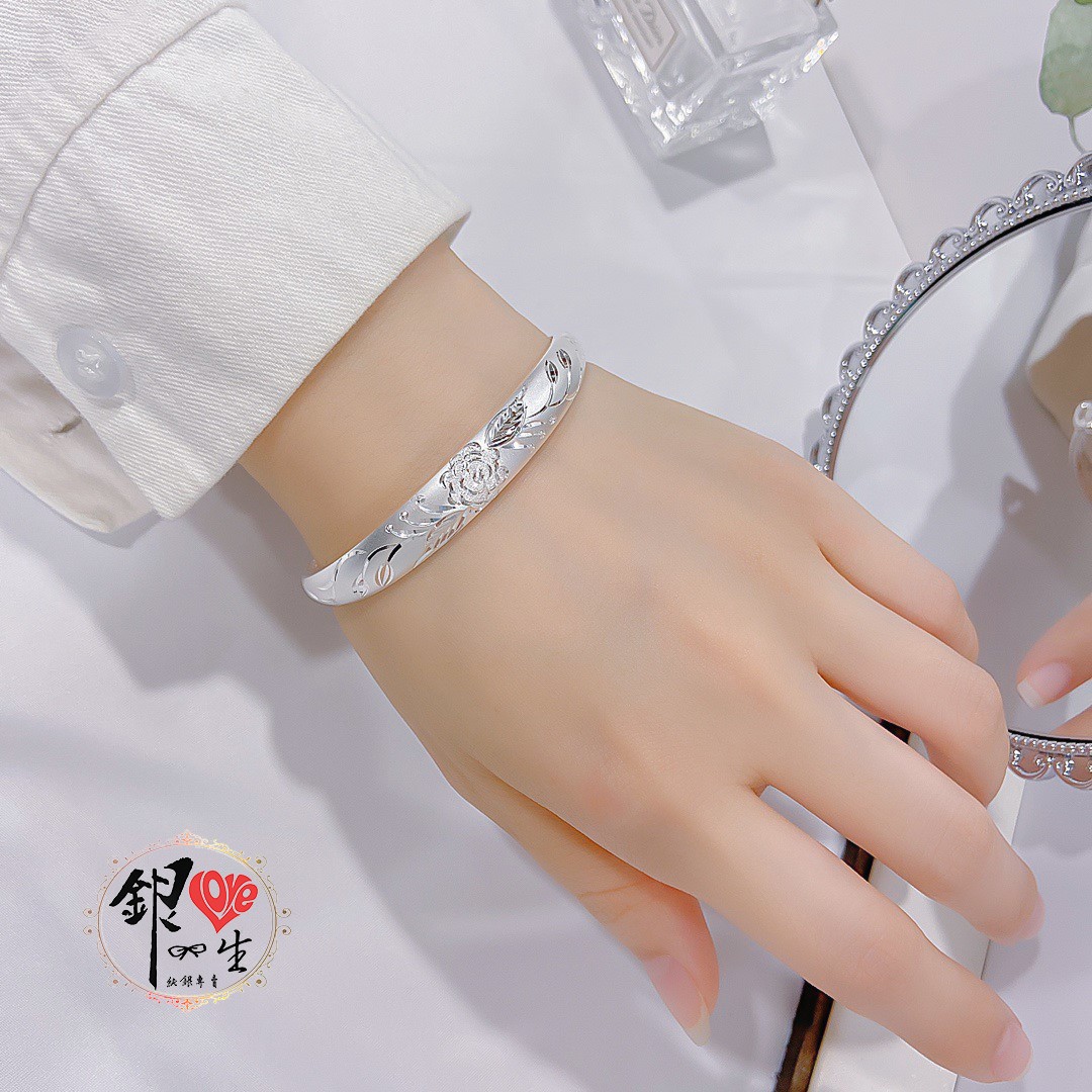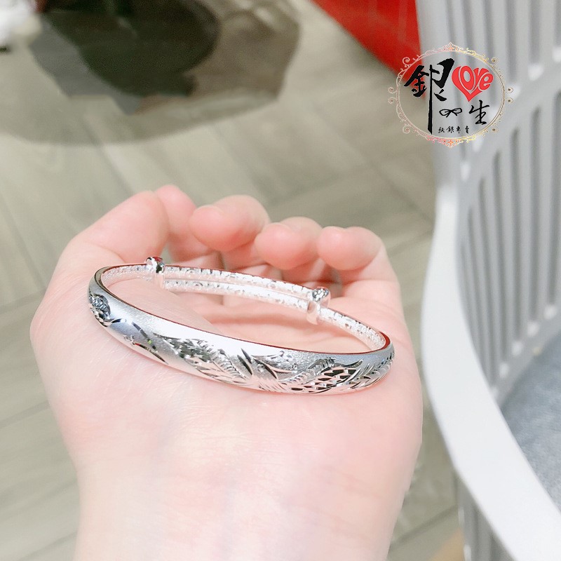 商品名稱 : 銀愛一生s999純銀 繁花似錦 噴砂 精緻 推拉手鐲