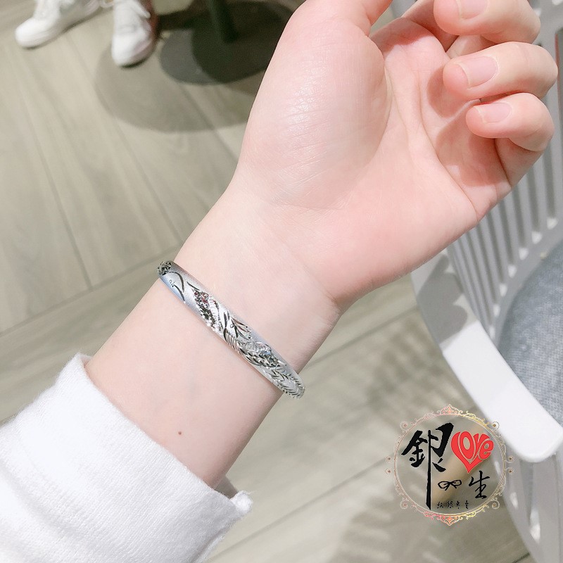 s999純銀 繁花似錦 噴砂 精緻 推拉手鐲