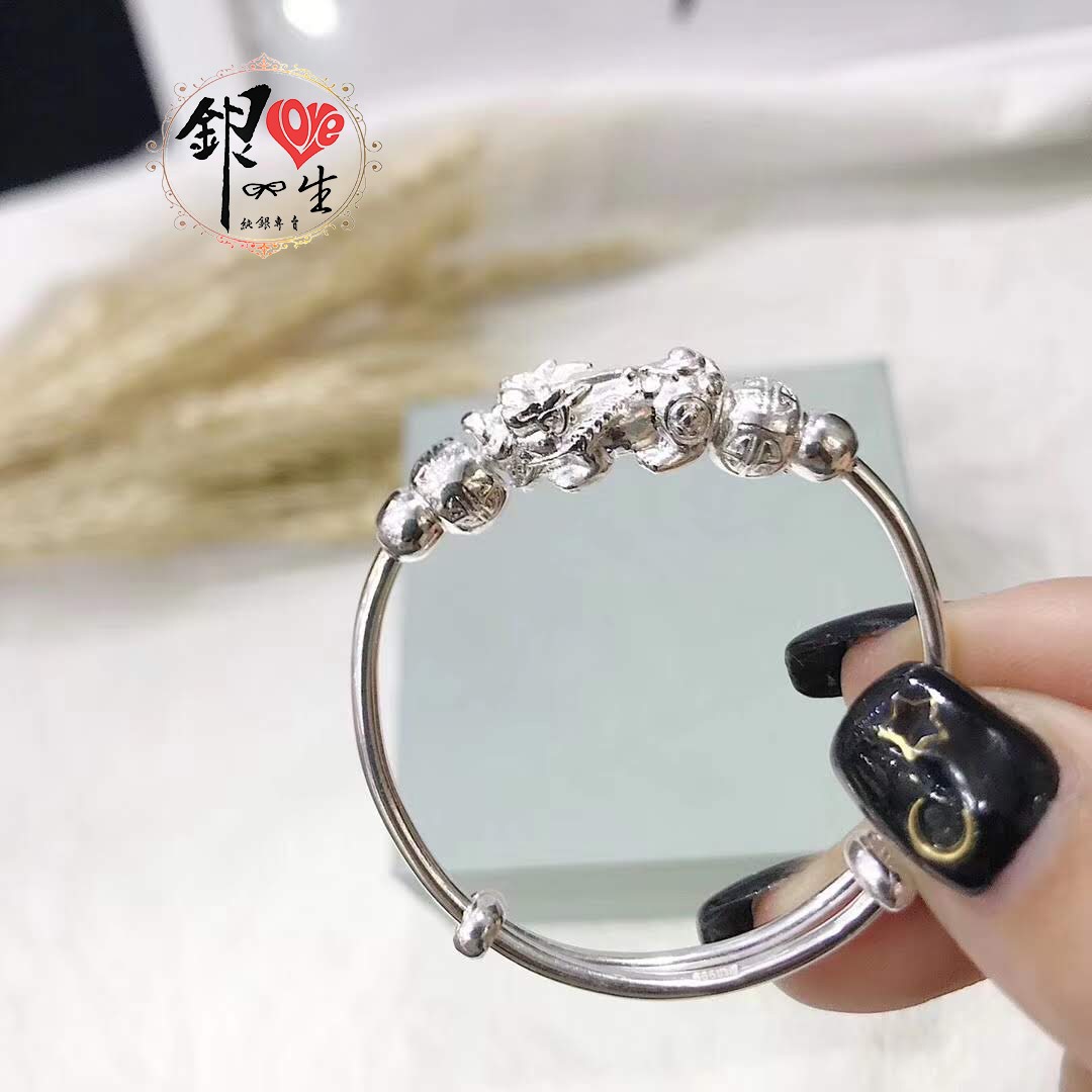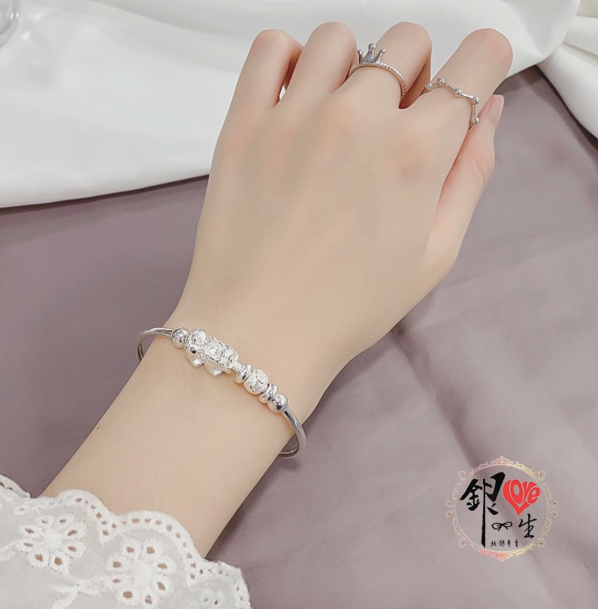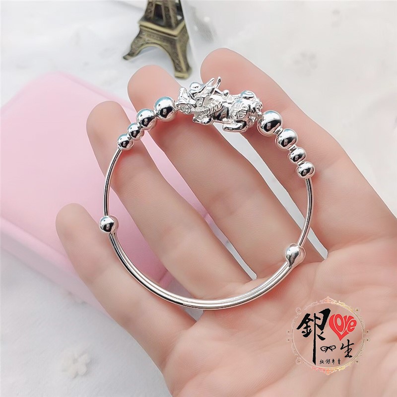 商品名稱 : 銀愛一生s999純銀 貔貅 立體 招財 推拉手鐲
