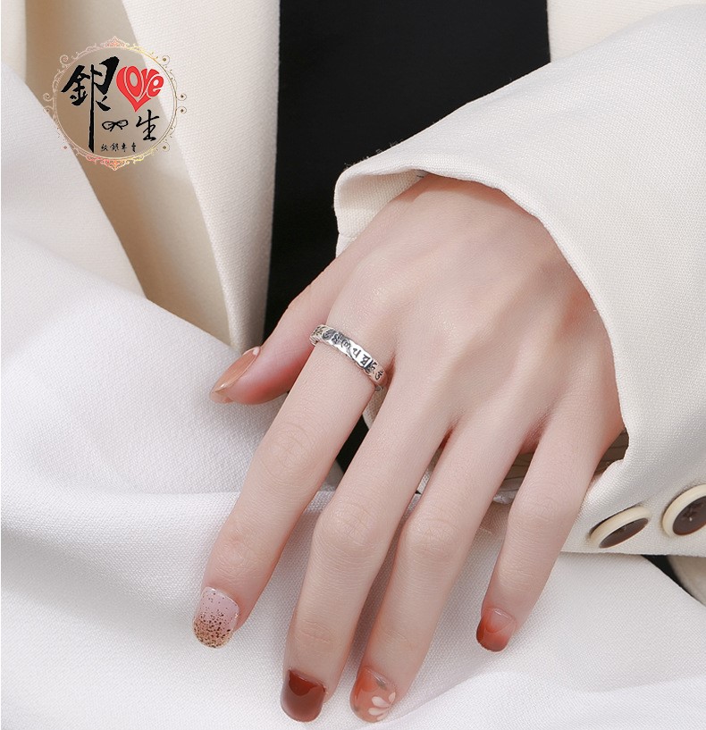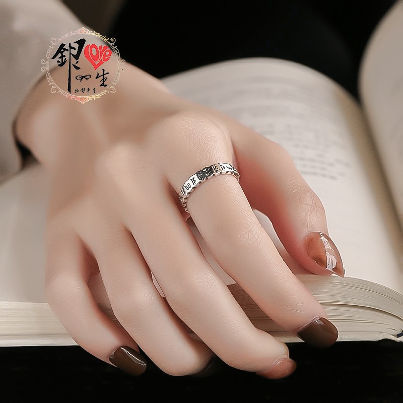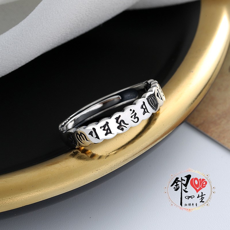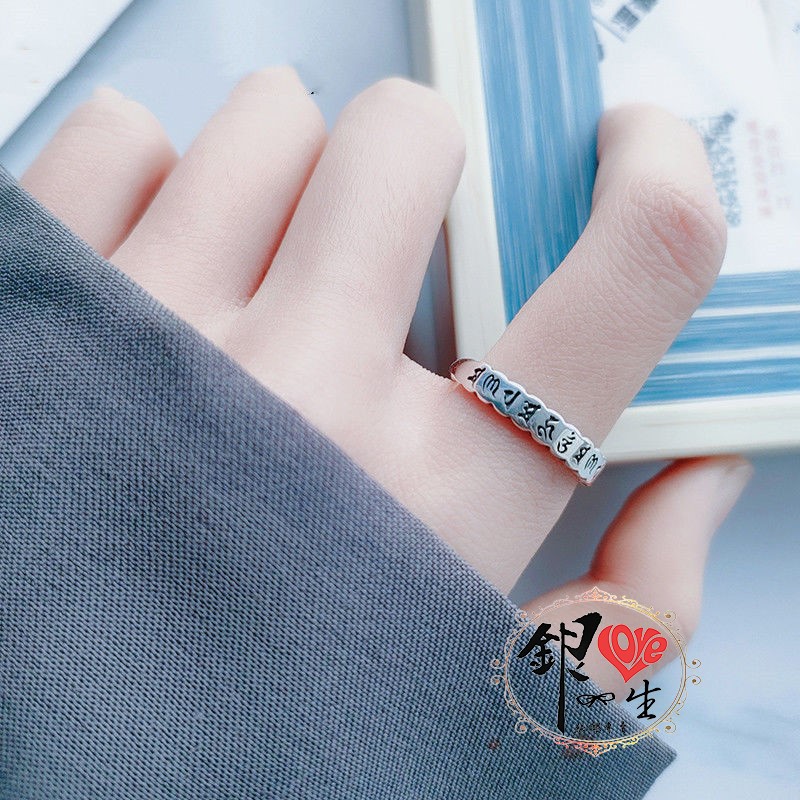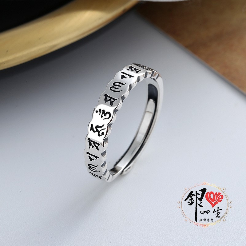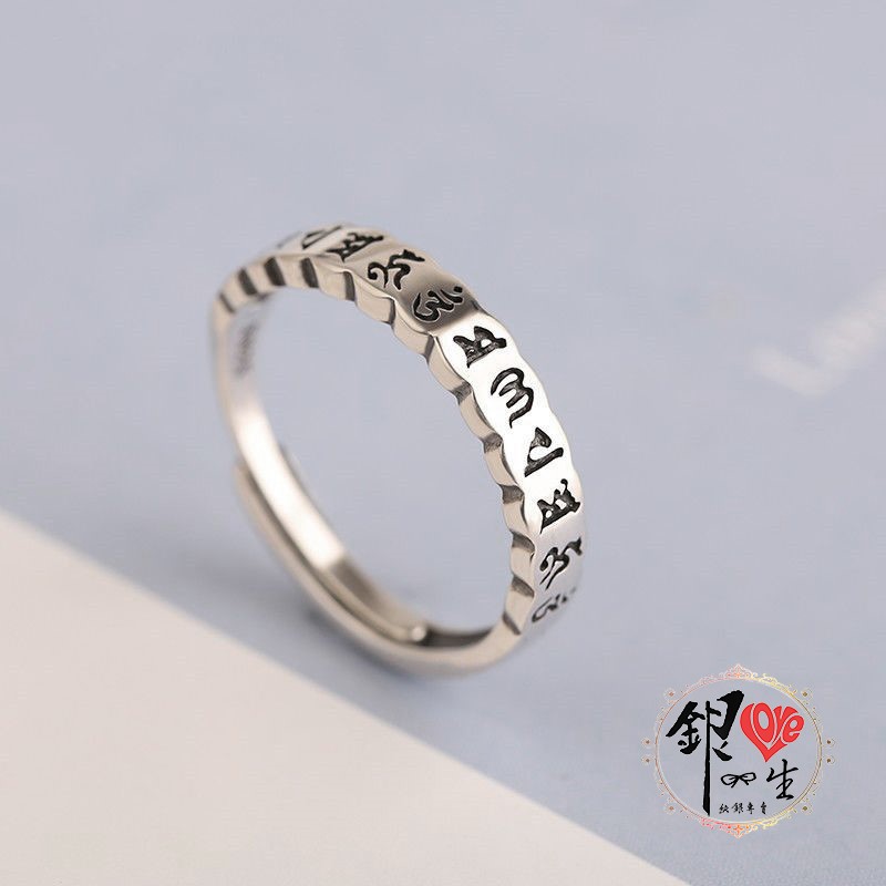 s925純銀戒指 復古簍空 六字真言 個性 戒
