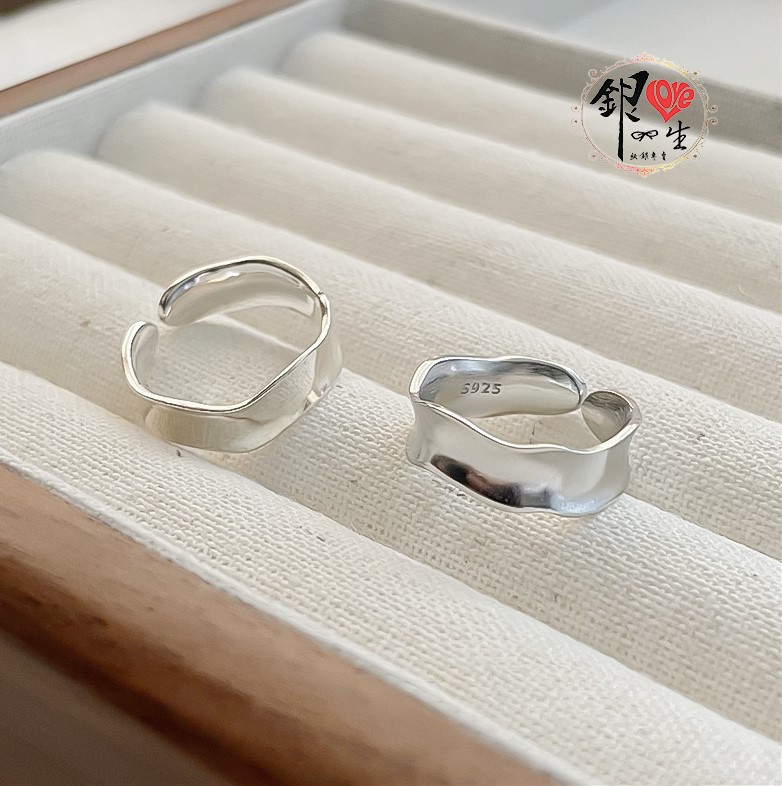 s925純銀 歐美 簡約素雅 波浪 造型 寬版 戒