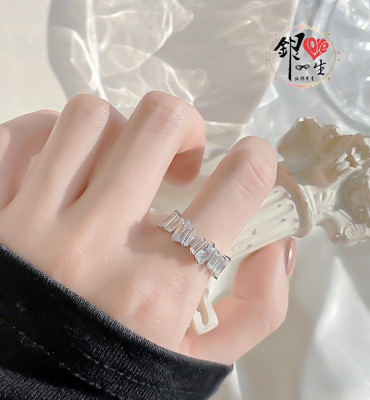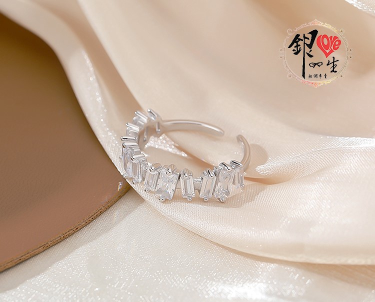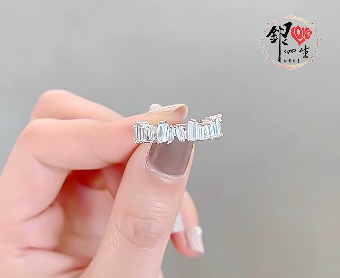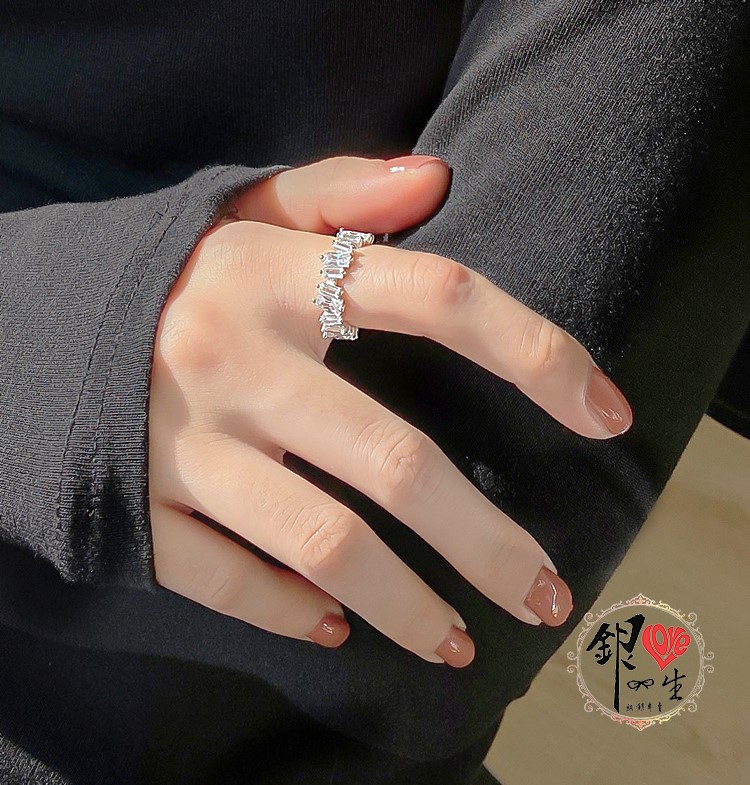商品名稱 : 銀愛一生 s925純銀 奢華 幾何 方形排鑽 造型 戒