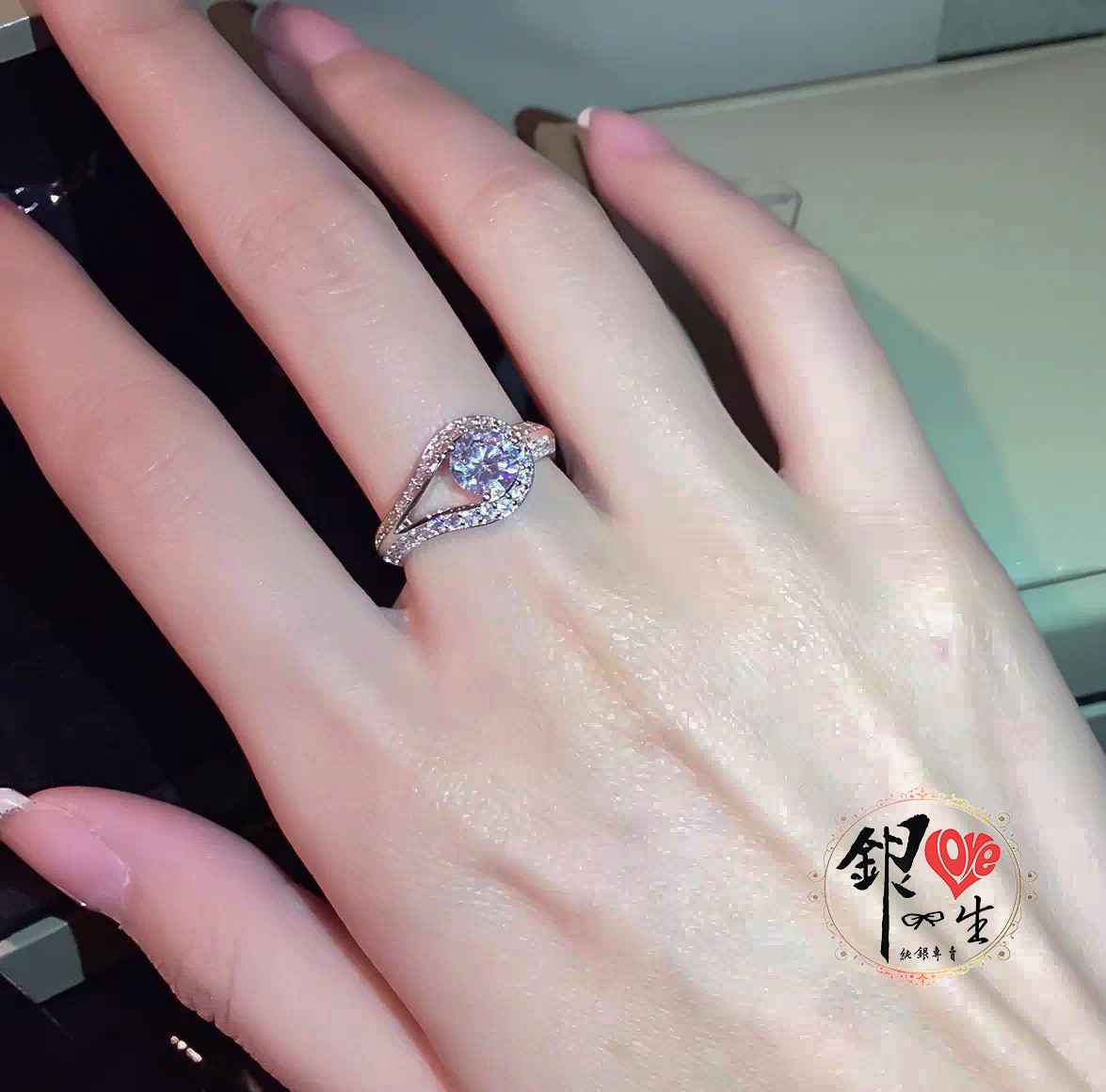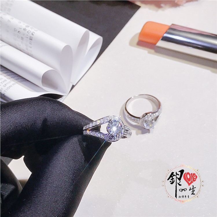 s925純銀 2克拉 扭結滿鑽 奢華 戒