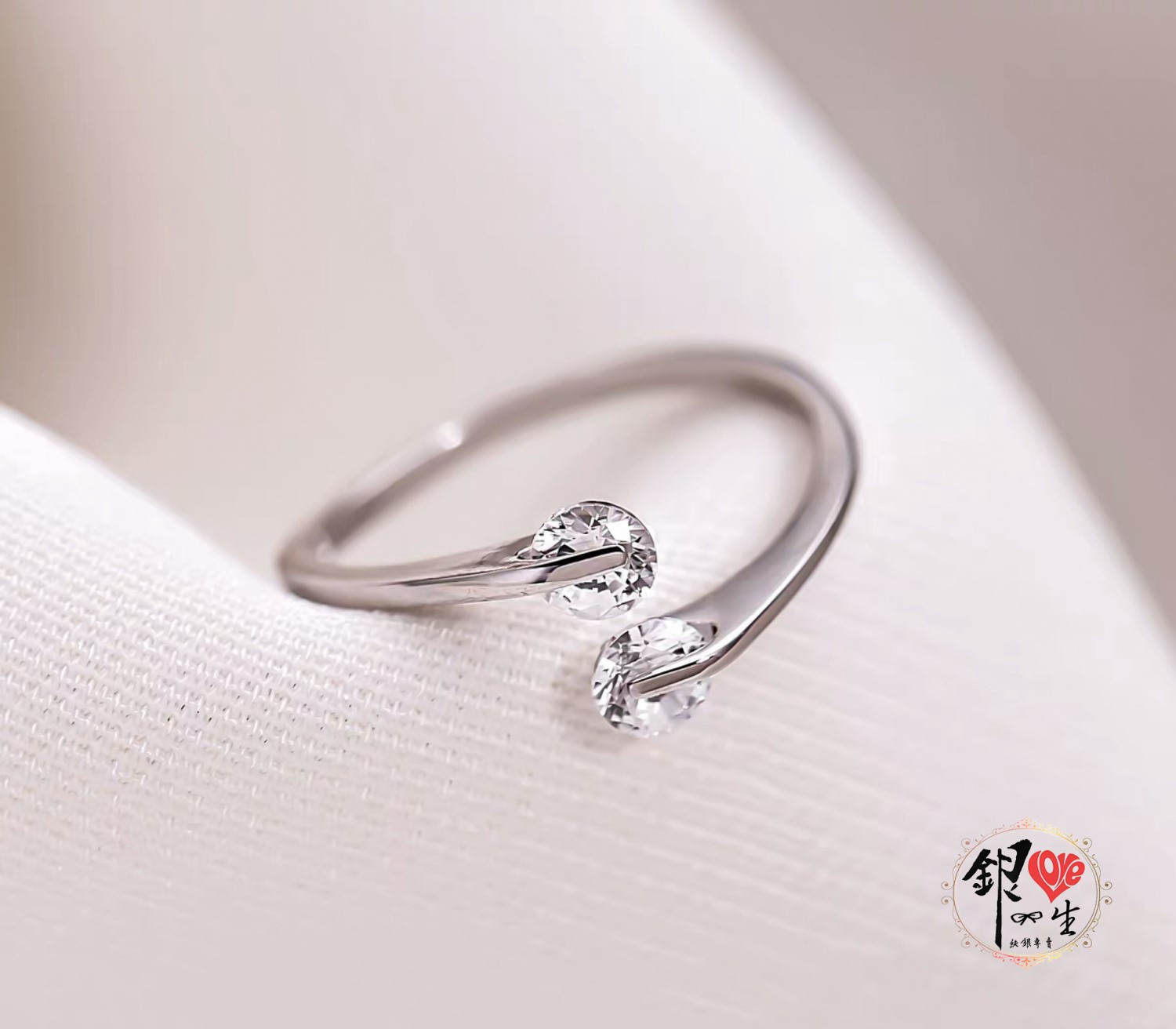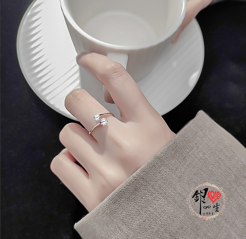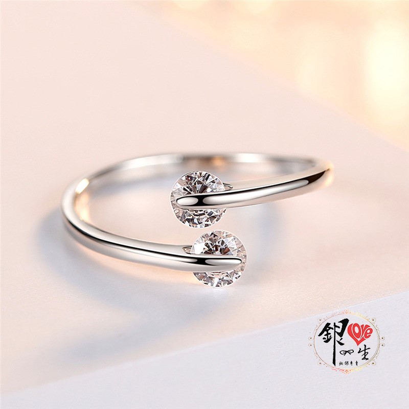 商品名稱 : 銀愛一生s925純銀 簡約 雙鑽 旋轉 戒