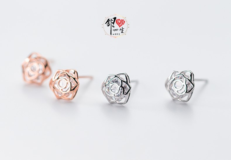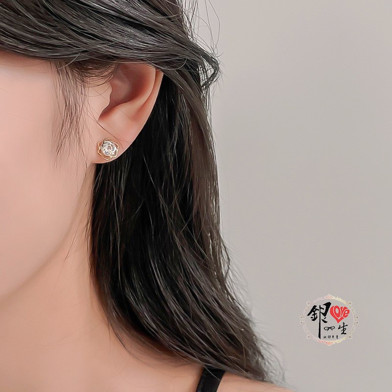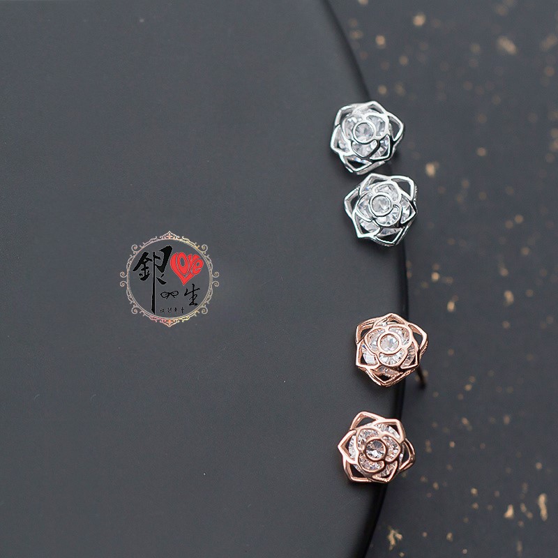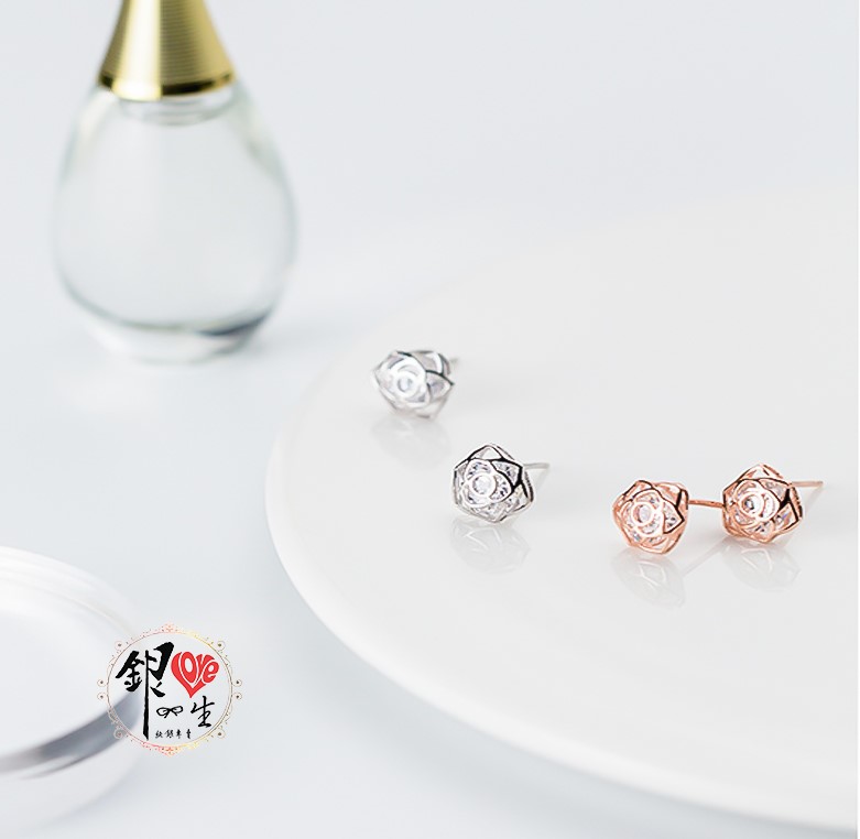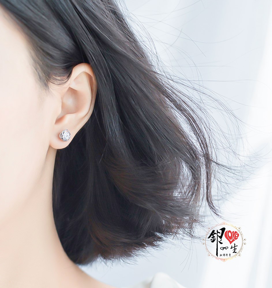 商品名稱 : 銀愛一生 s925純銀耳釘 玫瑰造型 星光熠熠 耳環