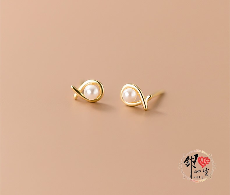 商品名稱 : 銀愛一生 s925純銀 貝珠耳釘 法式復古魚兒