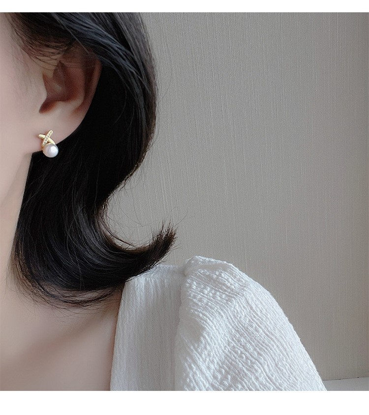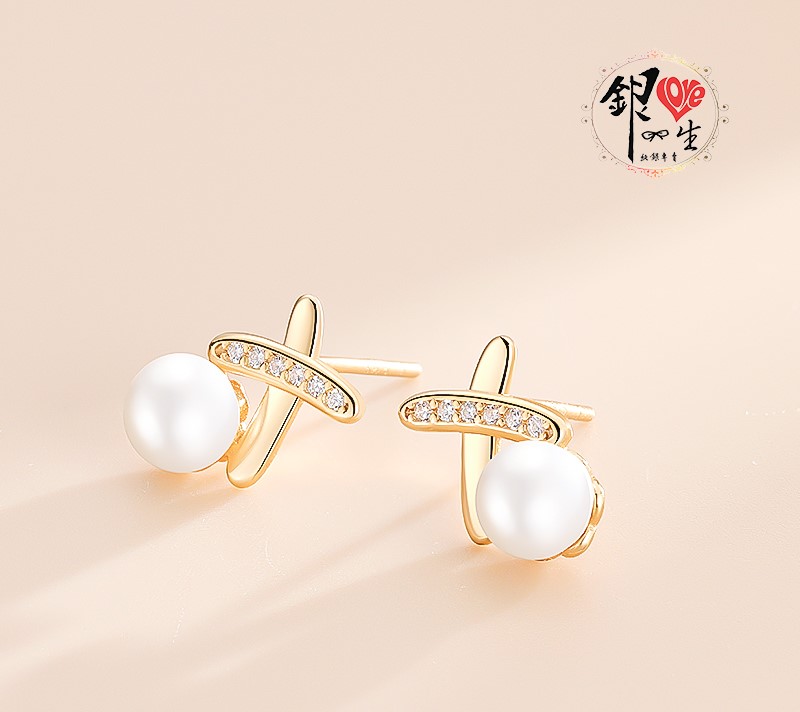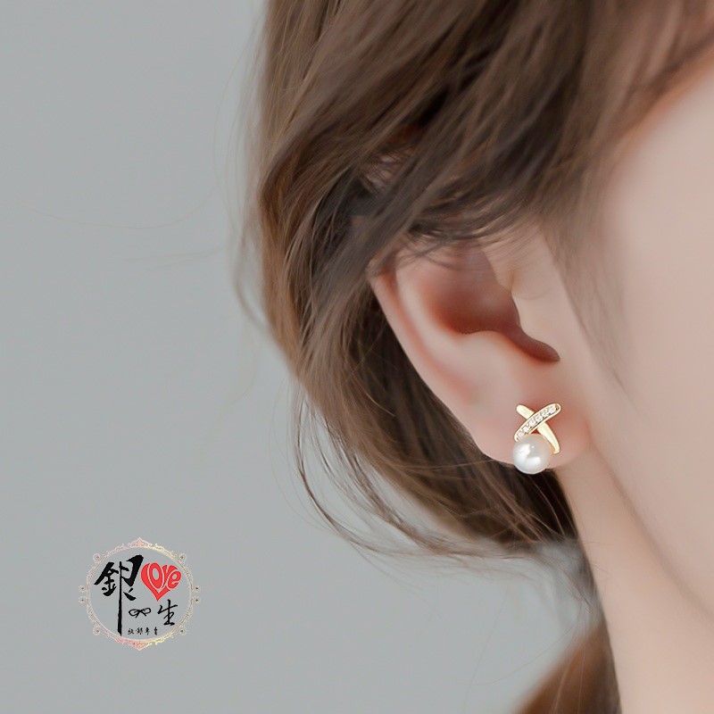 商品名稱 : 銀愛一生 s925純銀 天然珍珠 交叉 高級感耳環