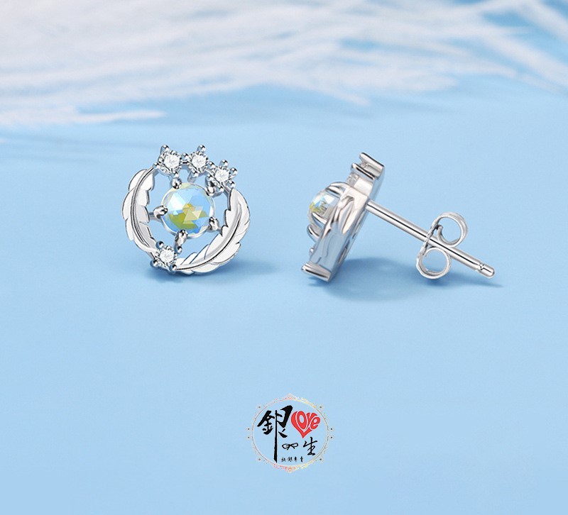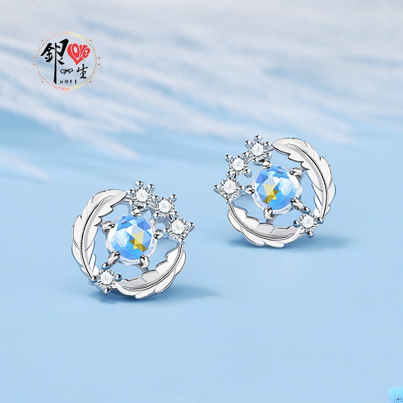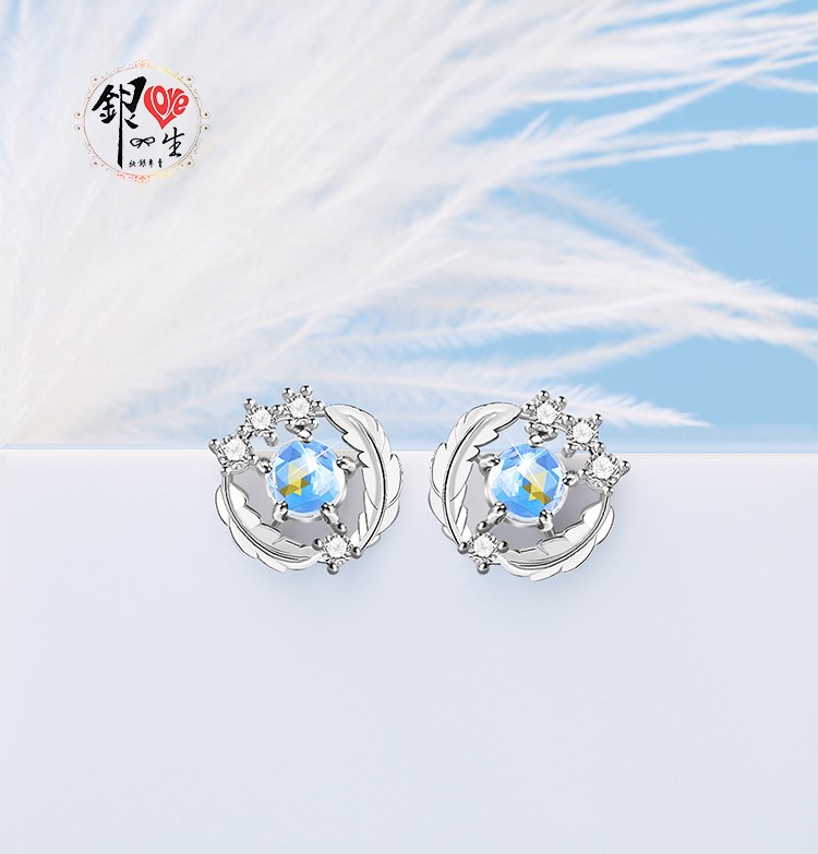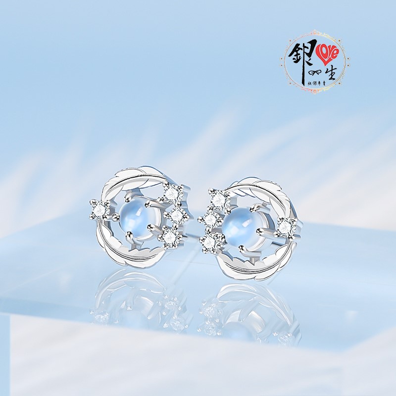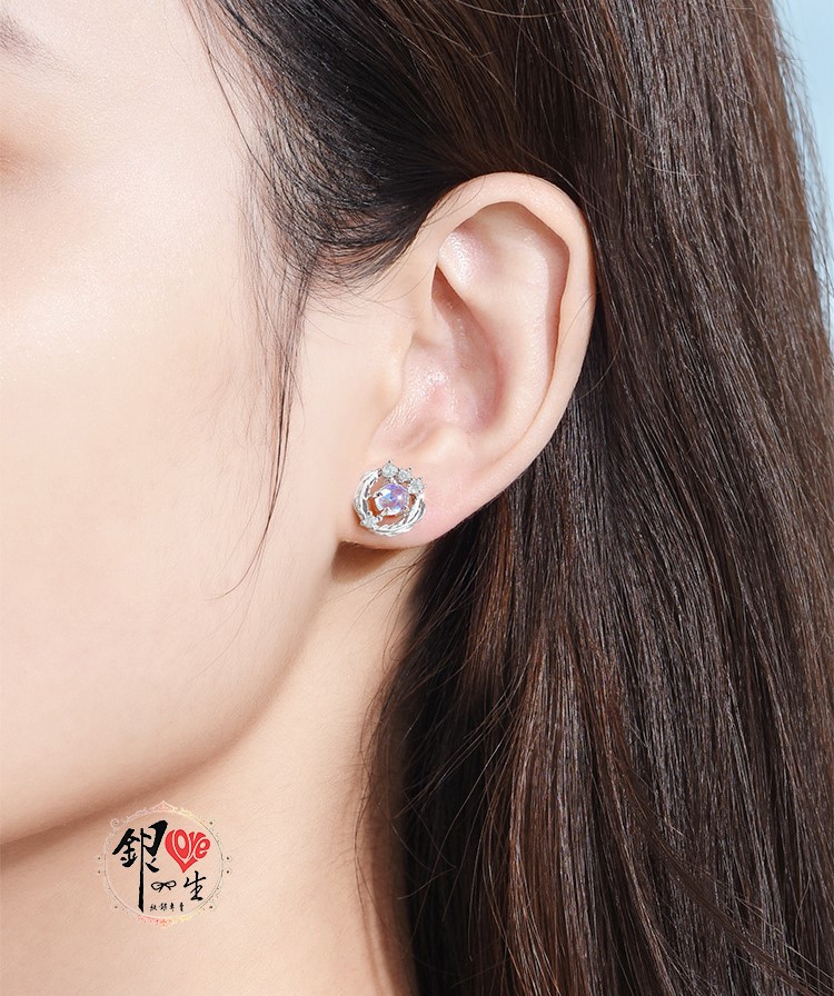商品名稱 : 銀愛一生 s925純銀 淺羽月光石 耳釘式 耳環