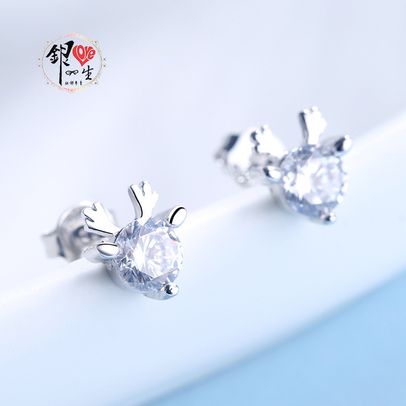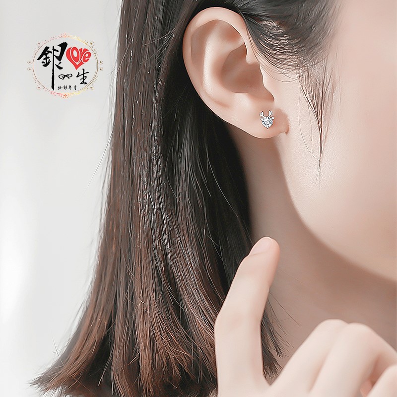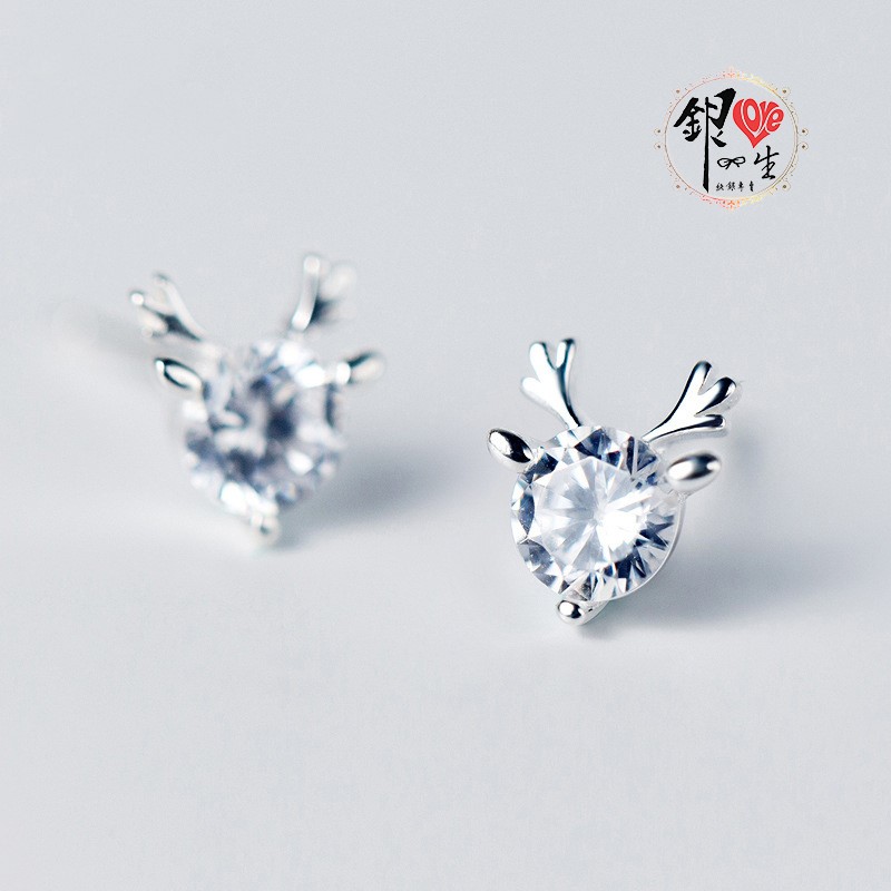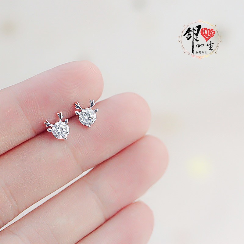 商品名稱 : 銀愛一生s925純銀耳釘 簡約閃鑽 鹿角 耳釘式 耳環