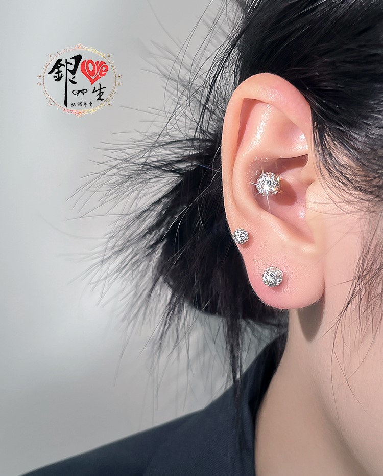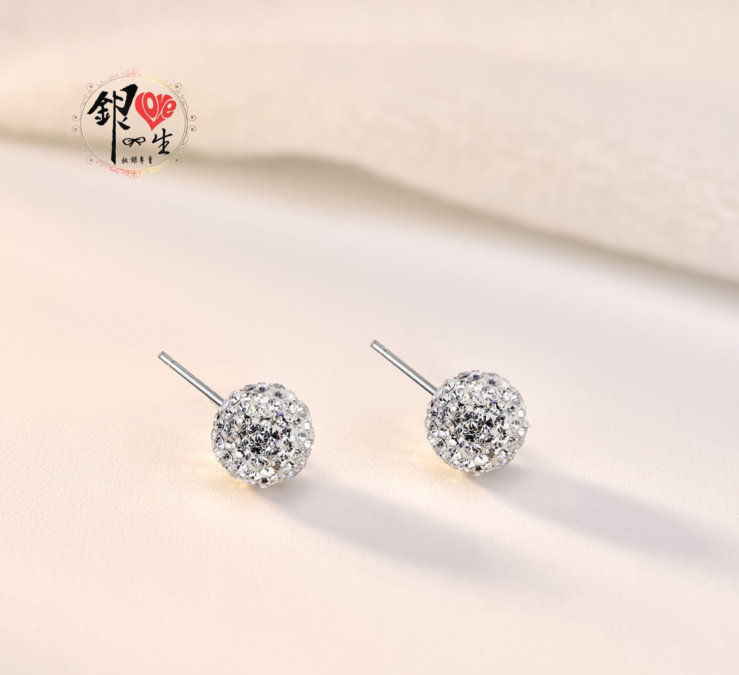 商品名稱 : 銀愛一生 s925純銀耳環 香巴拉 滿鑽 超閃 耳釘式 耳環