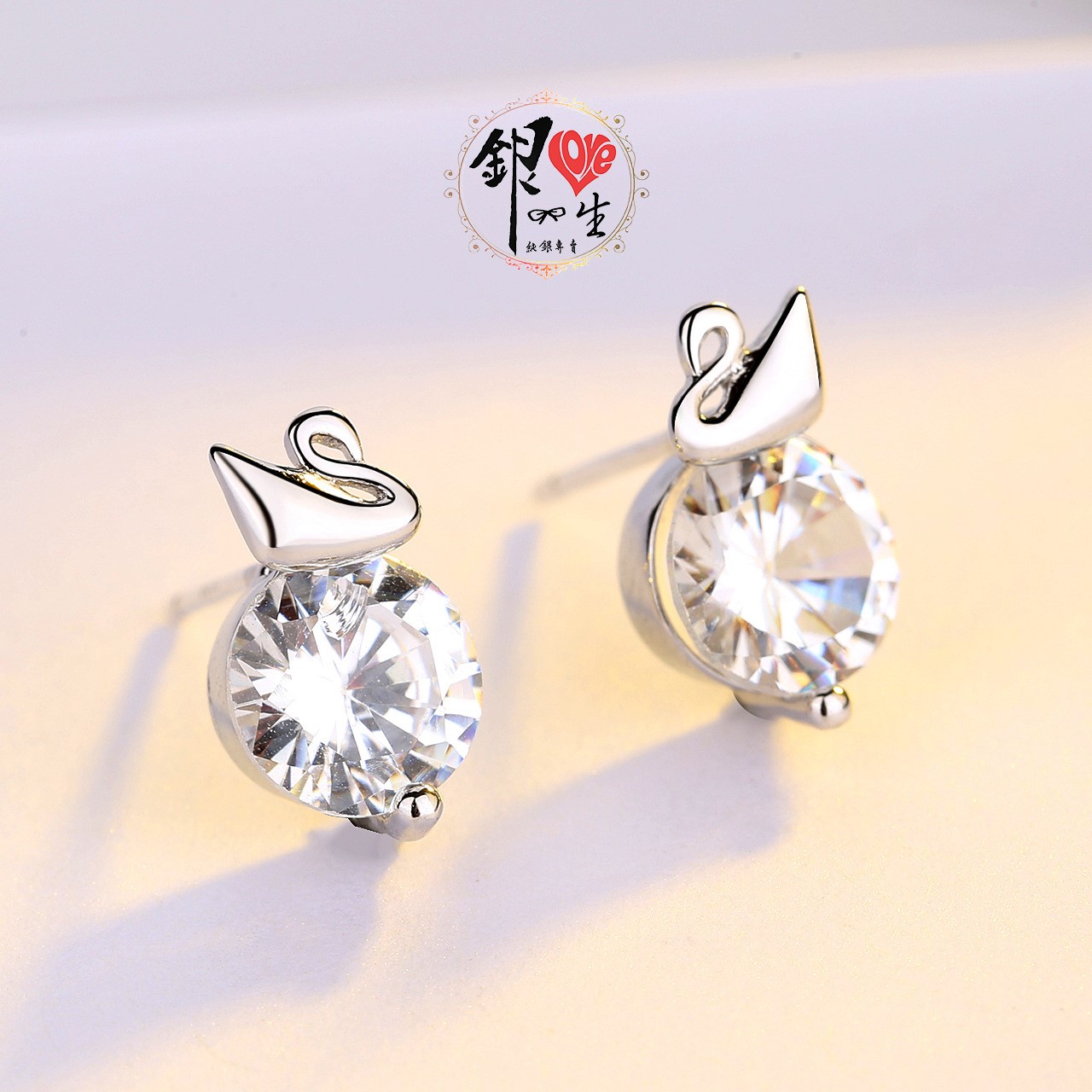 商品名稱 : 銀愛一生 s925純銀 天鵝 璀璨 閃耀 耳釘式 耳環