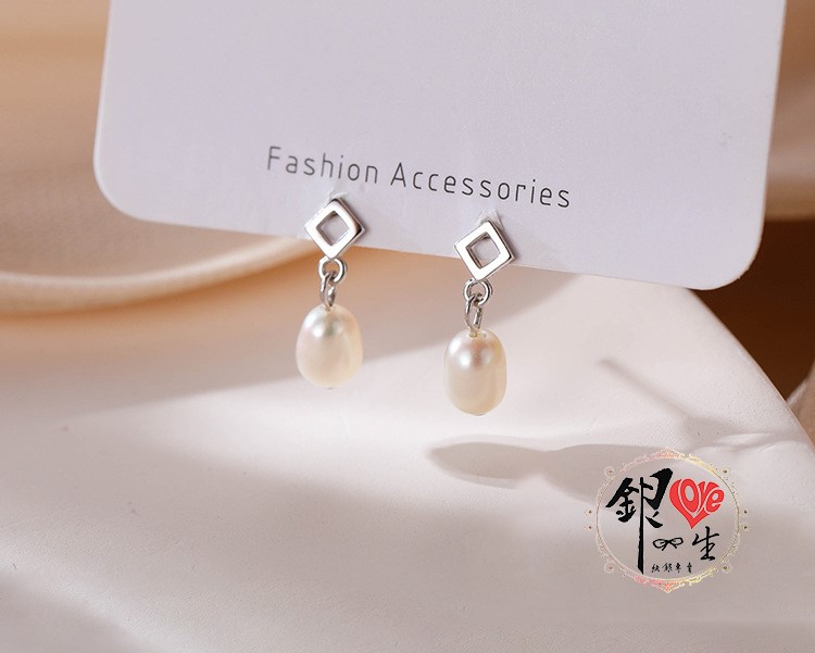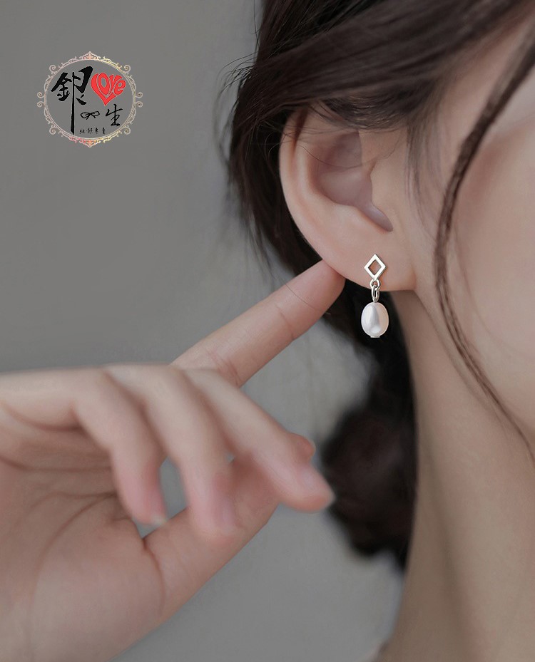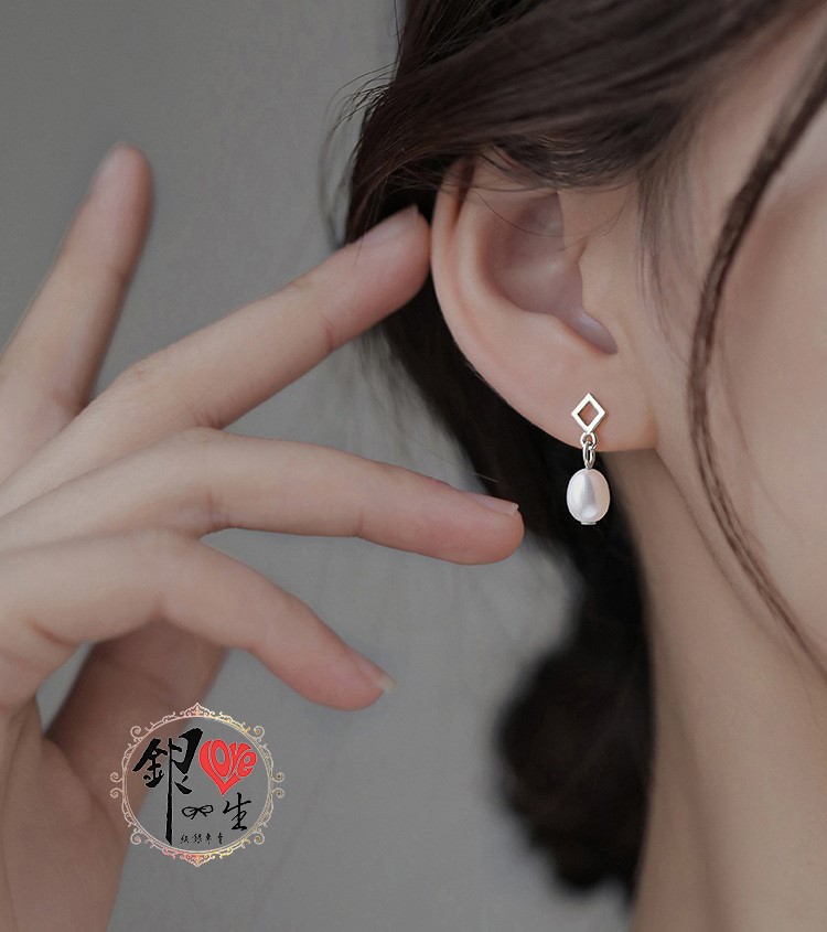 商品名稱 : 銀愛一生 s925純銀 天然珍珠 菱形 垂墜 耳針式 耳環