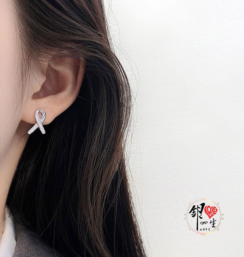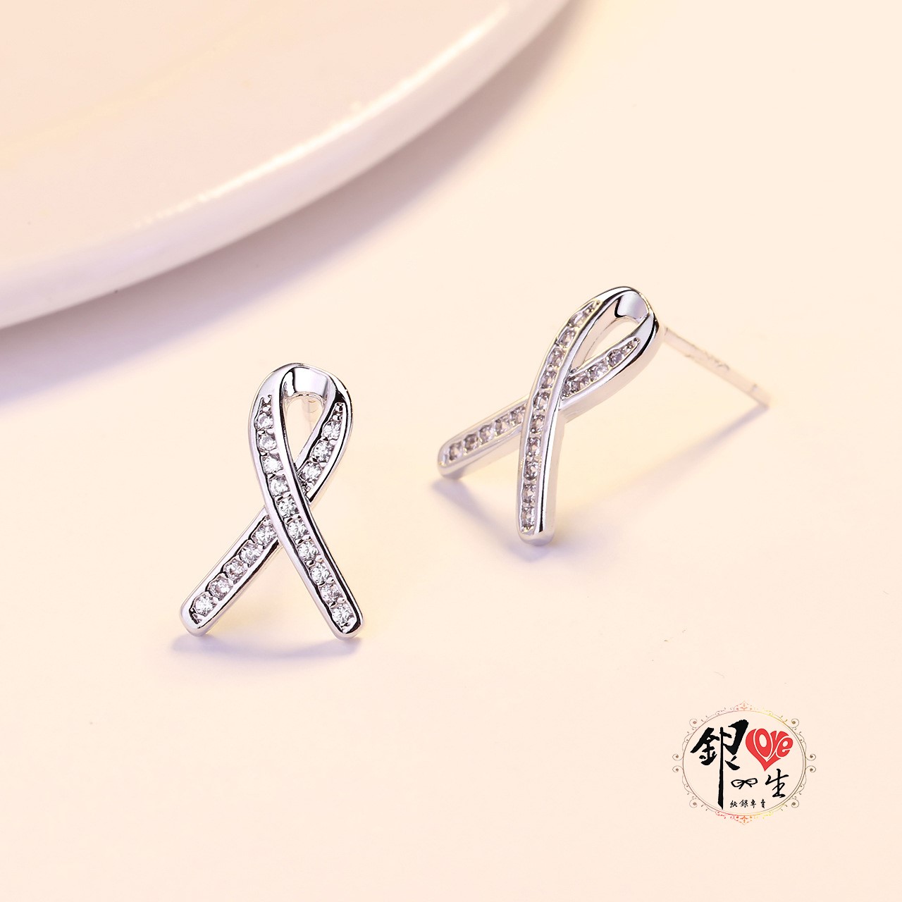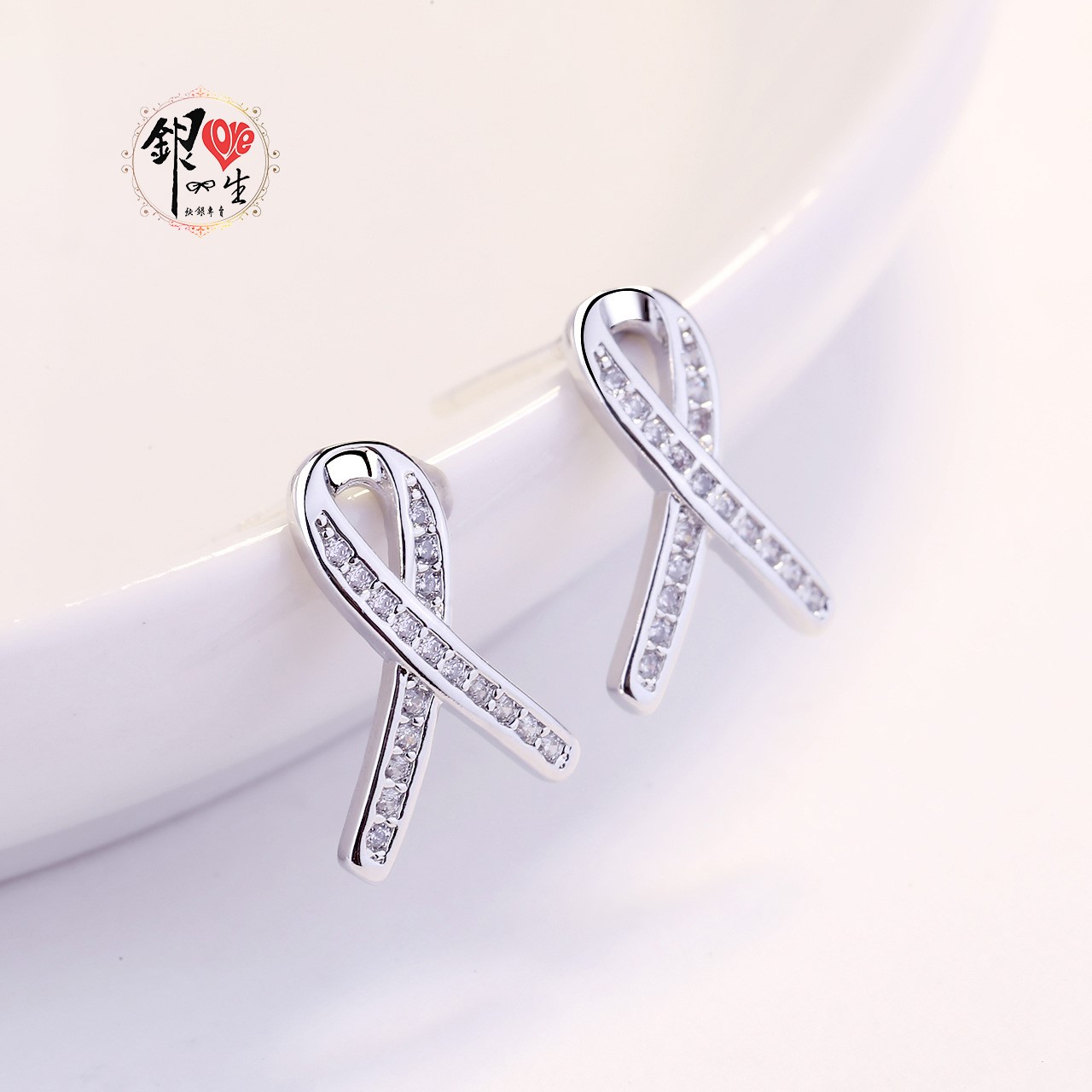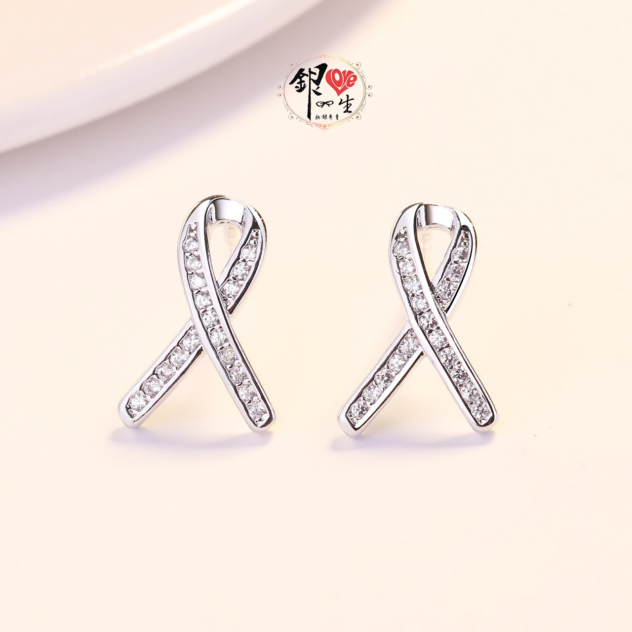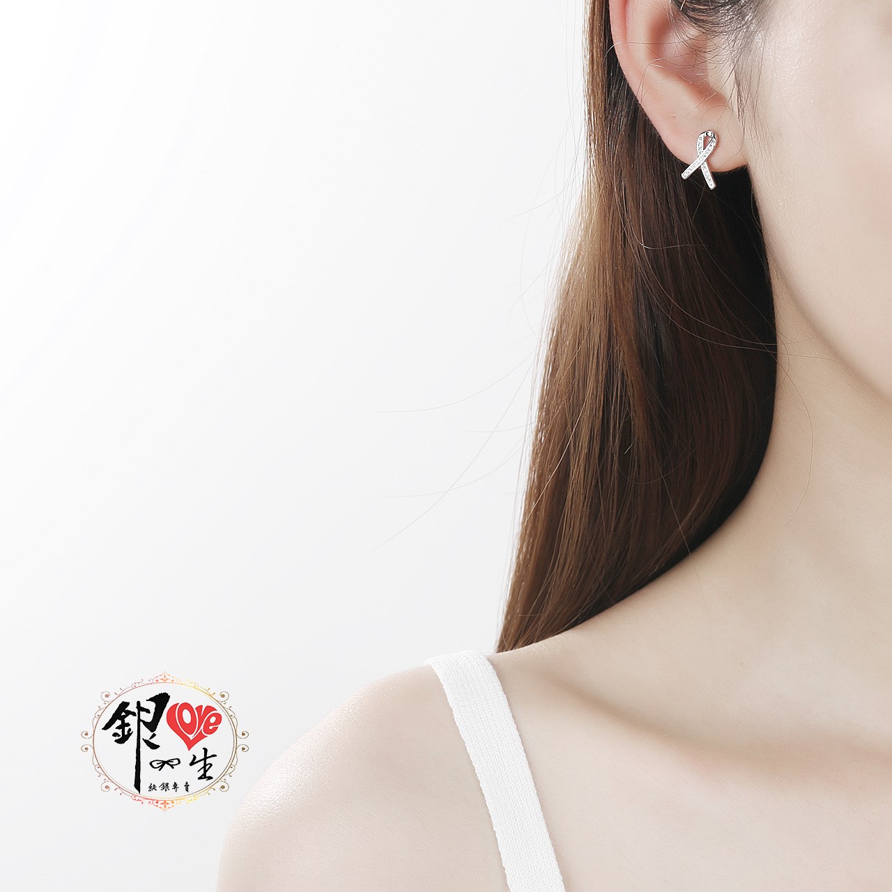 商品名稱 : 銀愛一生 s925純銀 平安結 交叉 滿鑽 耳釘式 耳環