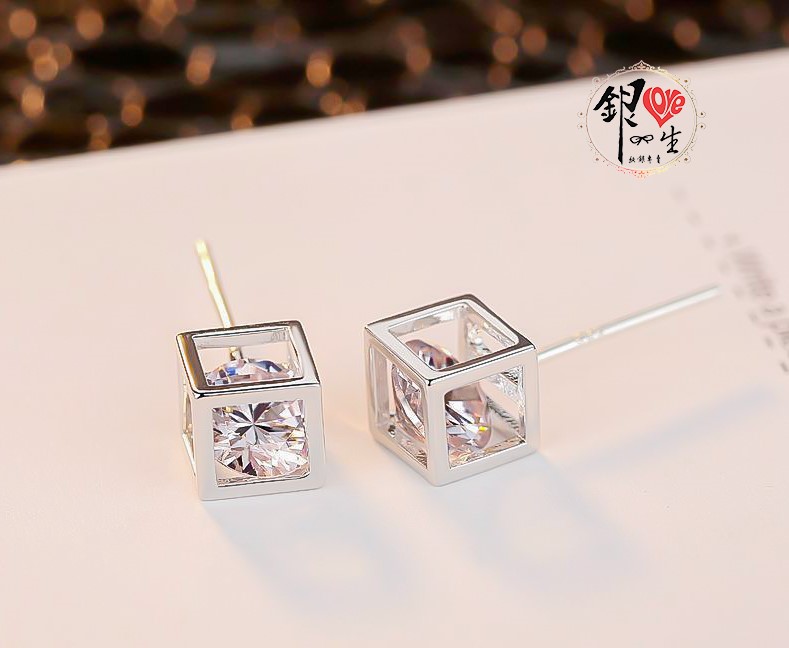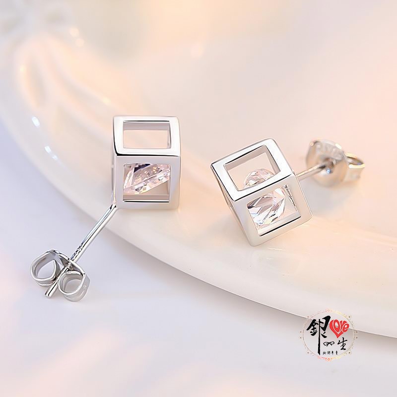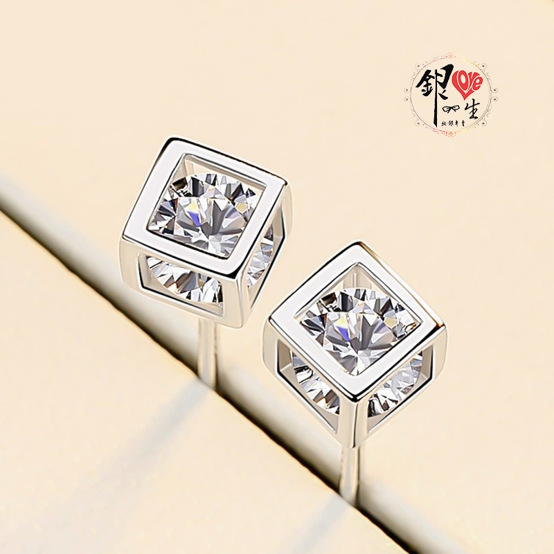 商品名稱 : 銀愛一生 s925純銀 立方造型 璀璨 閃耀 耳釘式 耳環