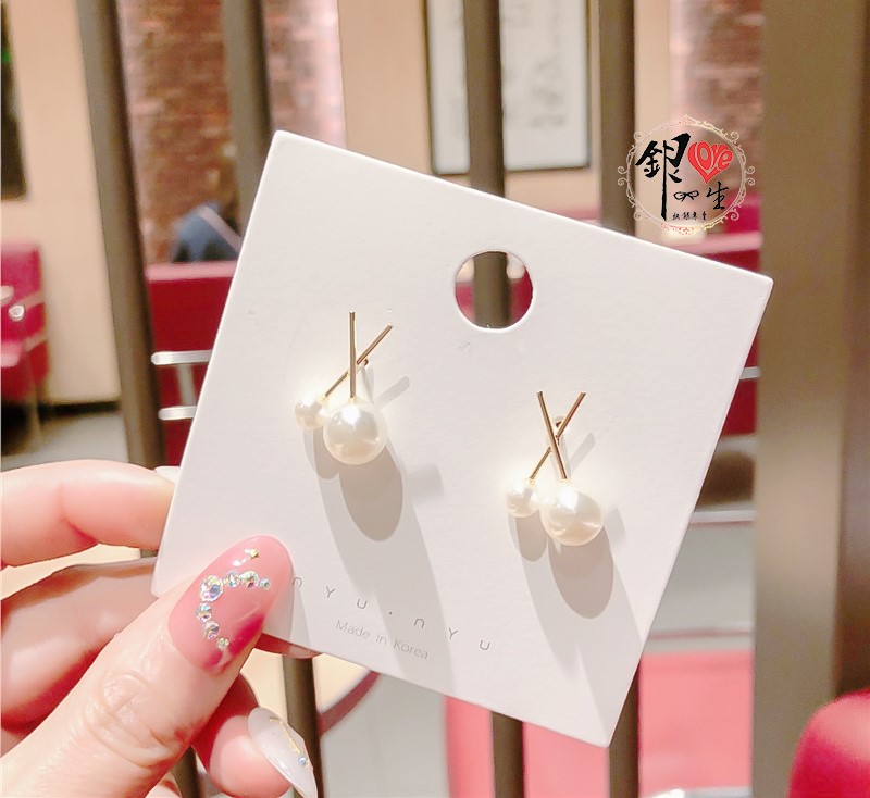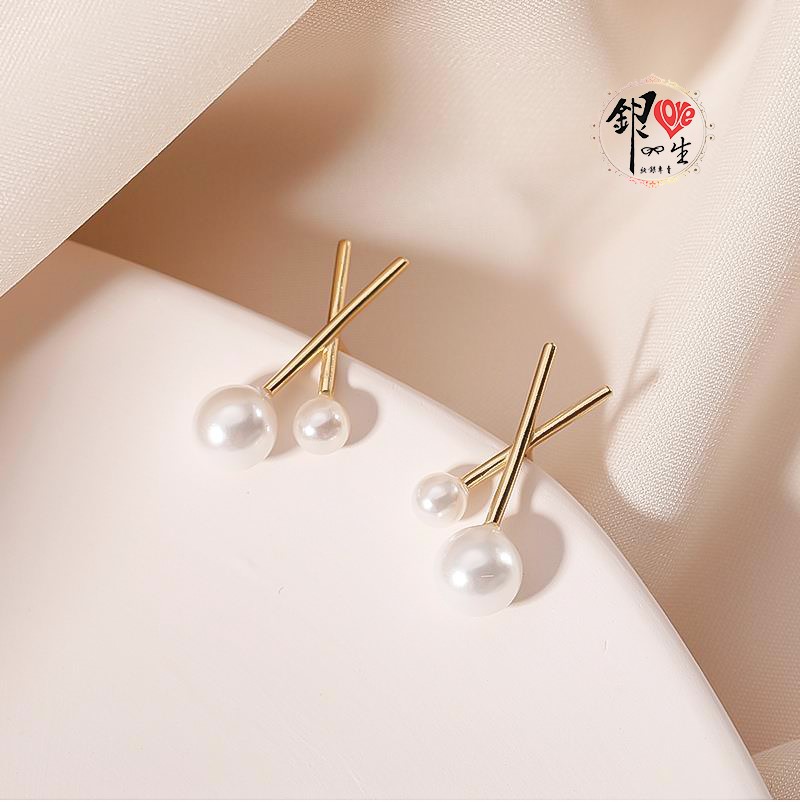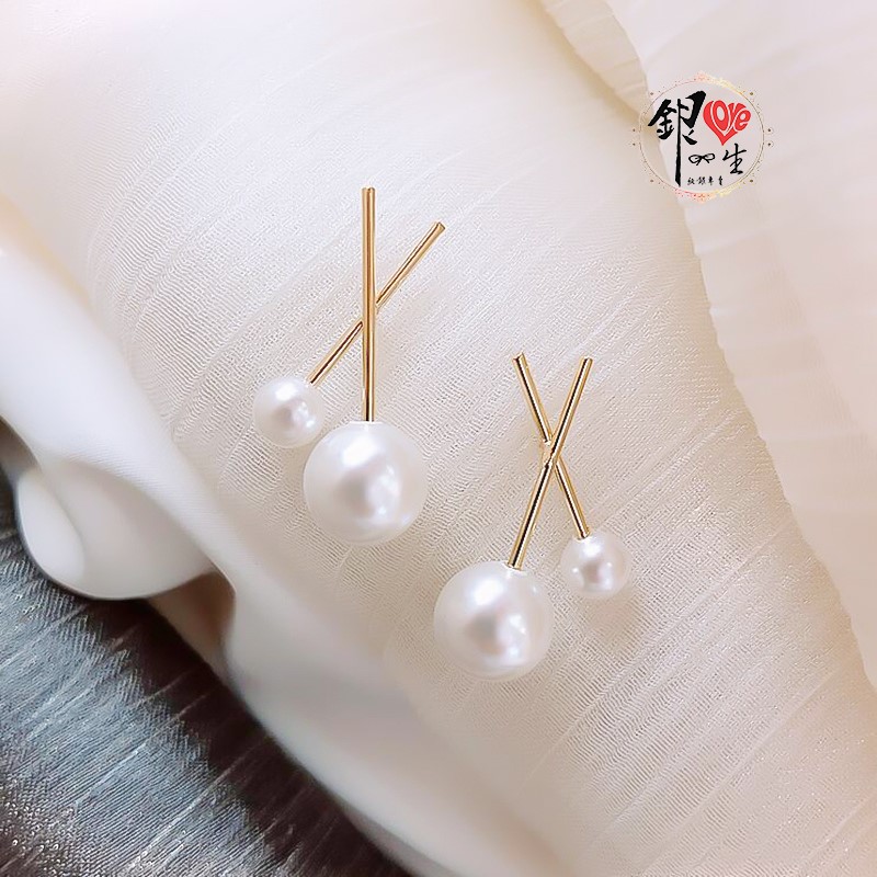 商品名稱 : 銀愛一生 s925純銀 貝珠 金色交織 耳釘式 耳環