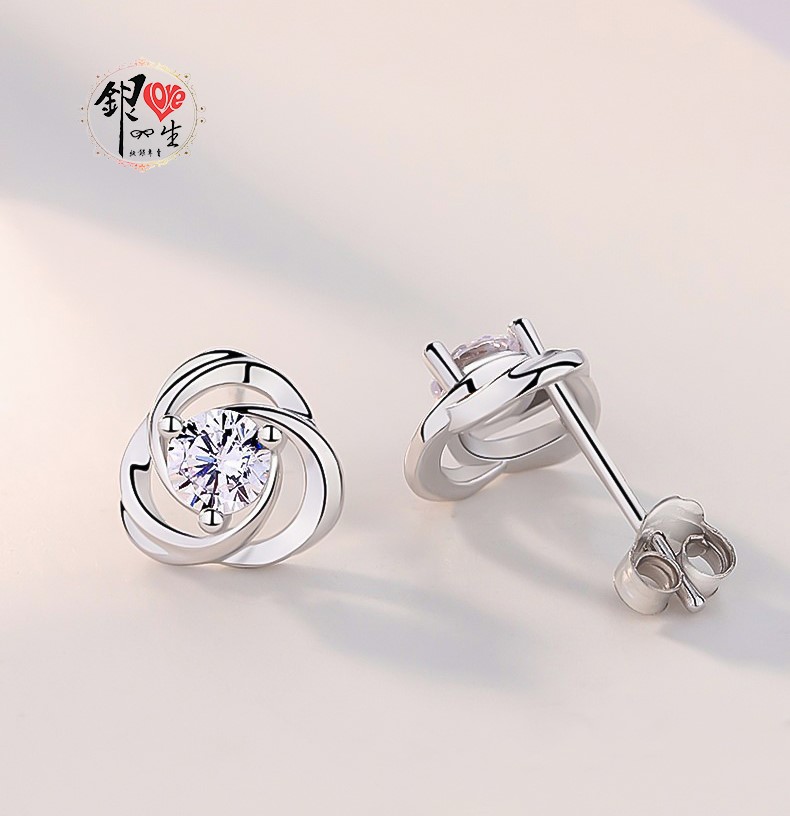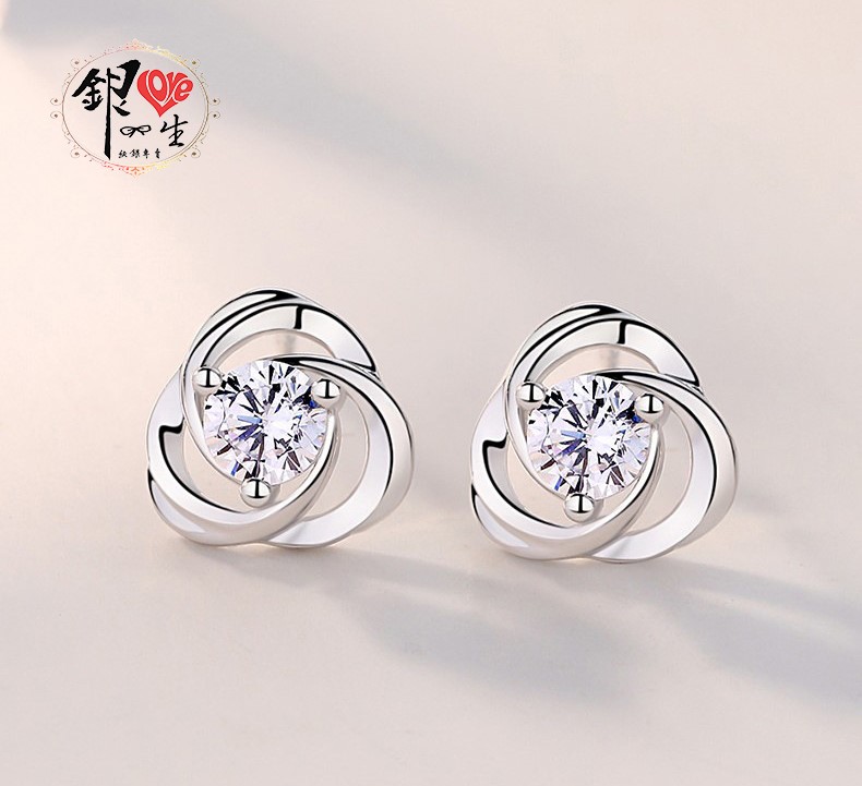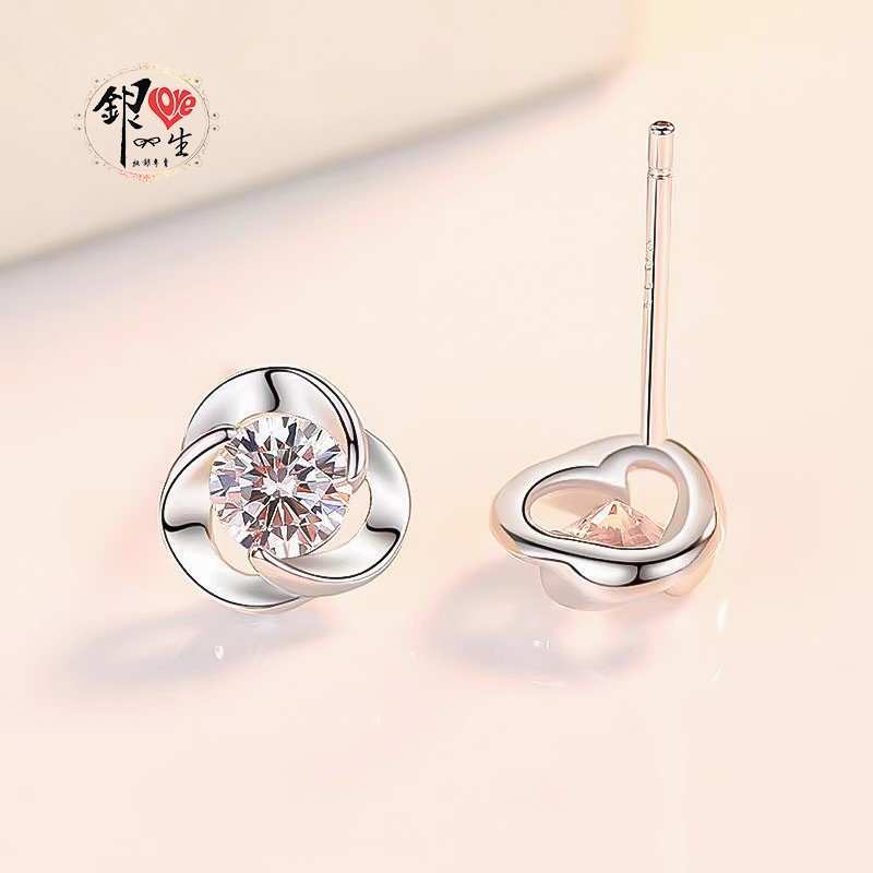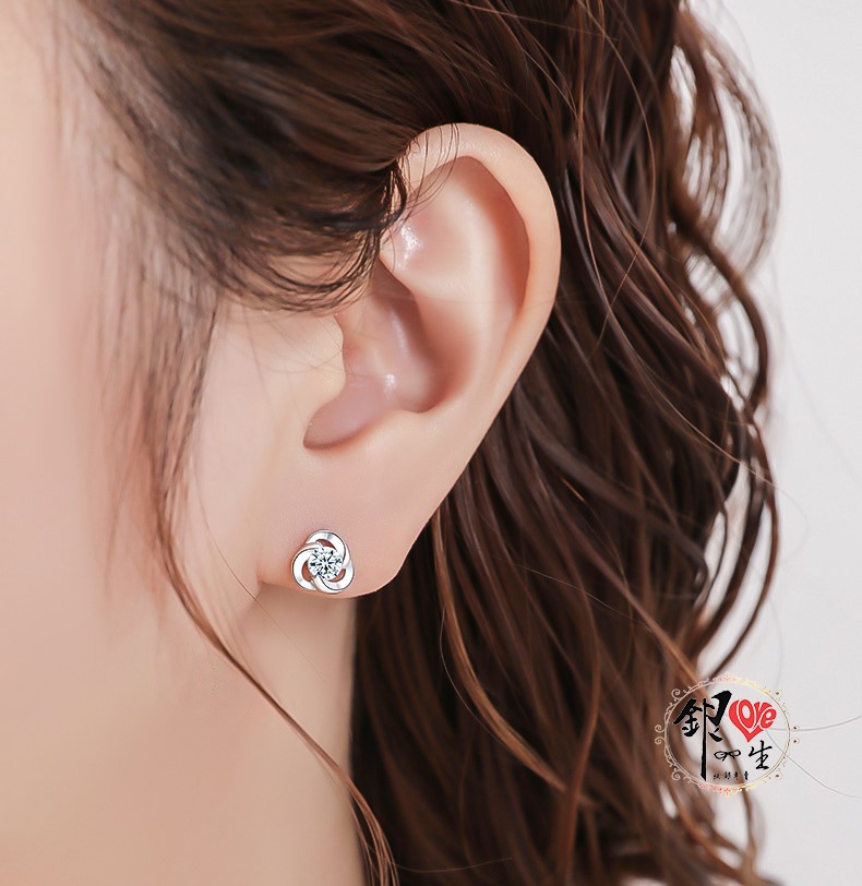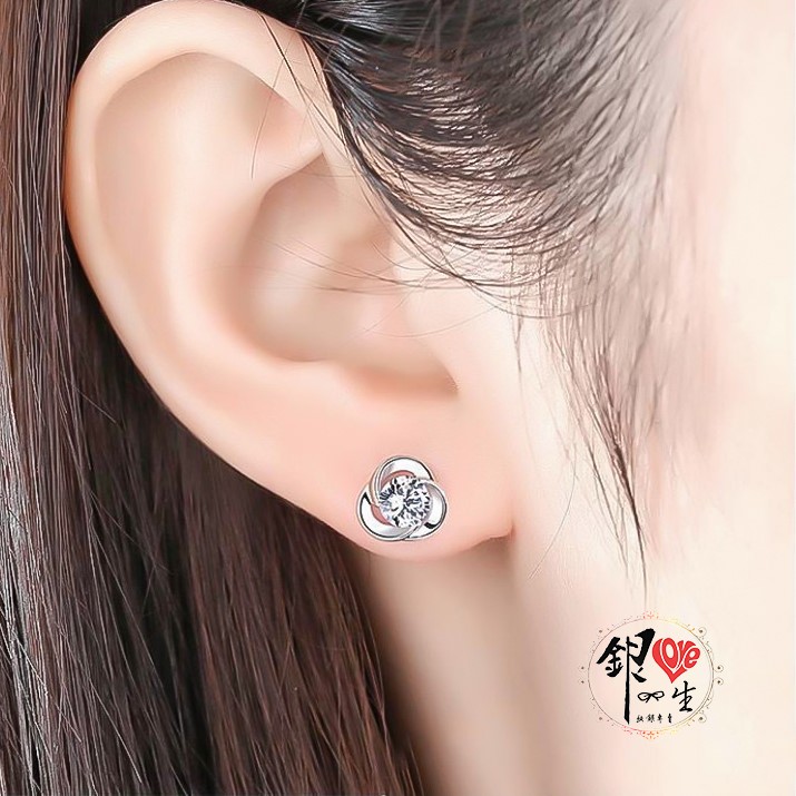 商品名稱 : 銀愛一生 s925純銀 三葉草造型 幸運 閃耀 耳釘式 耳環