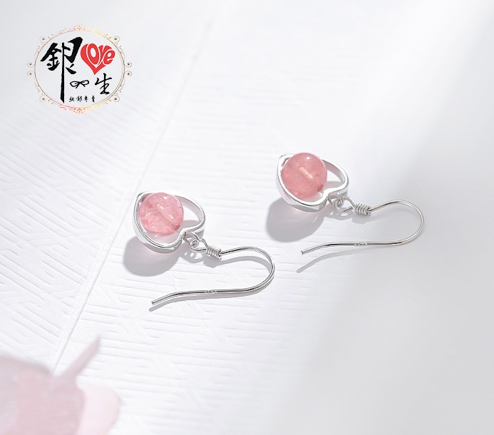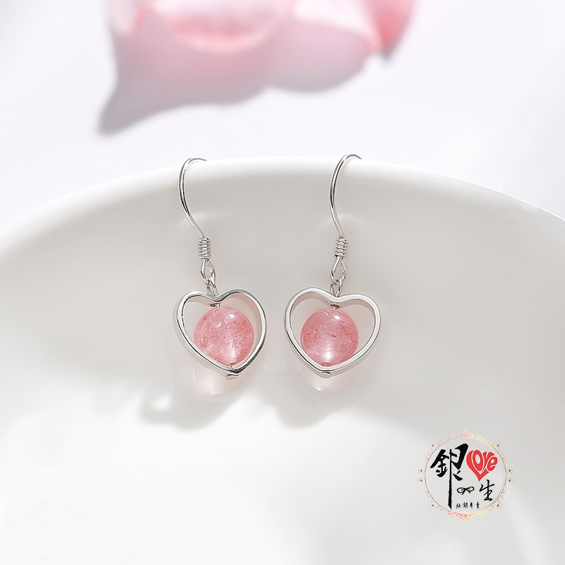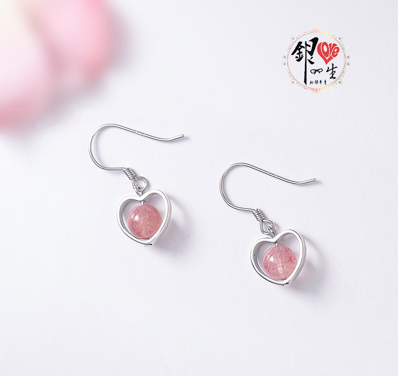 商品名稱 : 銀愛一生 s925純銀 愛心 草莓水晶 耳鈎式 耳環 • 鏡面拋光,細緻光滑,金屬部分皆為925純銀,敏感肌膚均可安心,配戴舒適