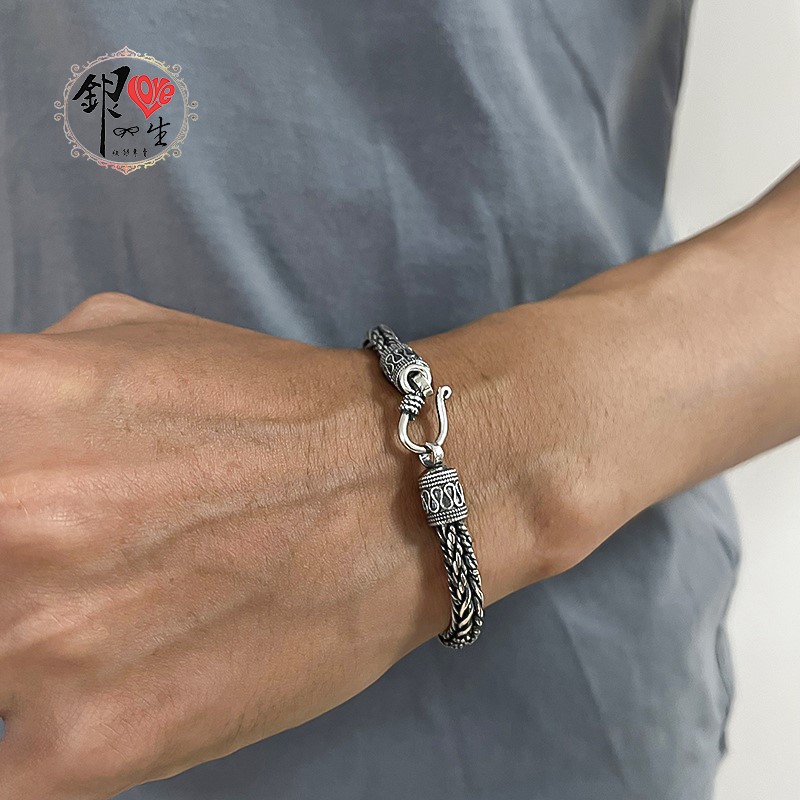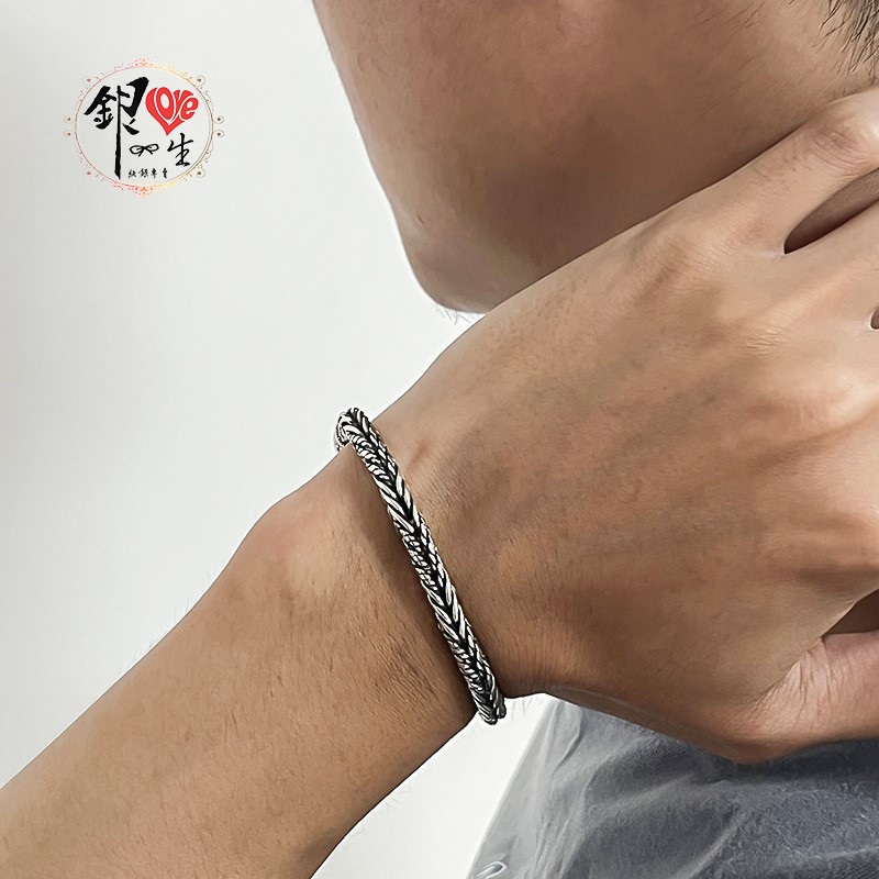 商品名稱 : 銀愛一生925純銀 復古 個性 粗麻花 男 手鍊 • 亮面拋光,細緻光滑,金屬部分皆為925純銀,敏感肌膚均可安心,配戴舒適 • 可免費升級為精緻禮盒 (附加產品保證書)