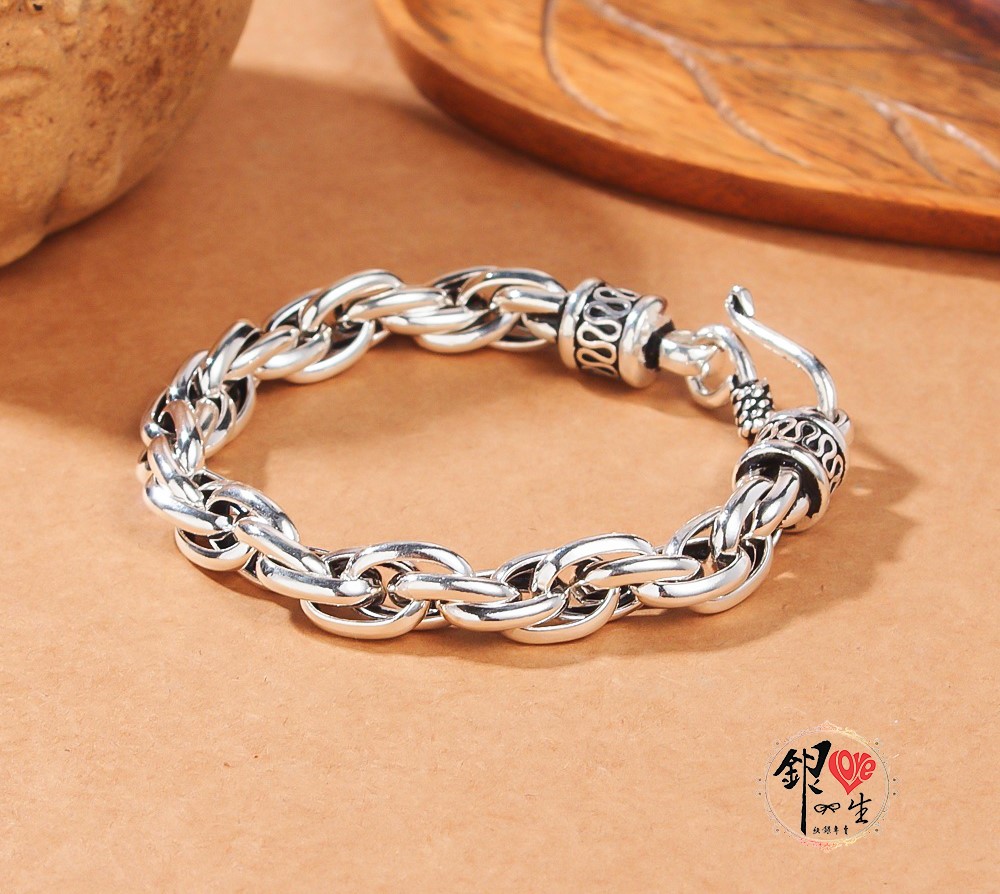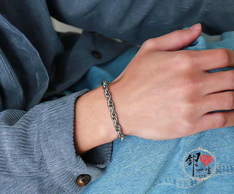 商品名稱 : 銀愛一生925純銀 復古 個性 編織 男 手鍊 • 亮面拋光,細緻光滑,金屬部分皆為925純銀,敏感肌膚均可安心,配戴舒適 • 可免費升級為精緻禮盒 (附加產品保證書)