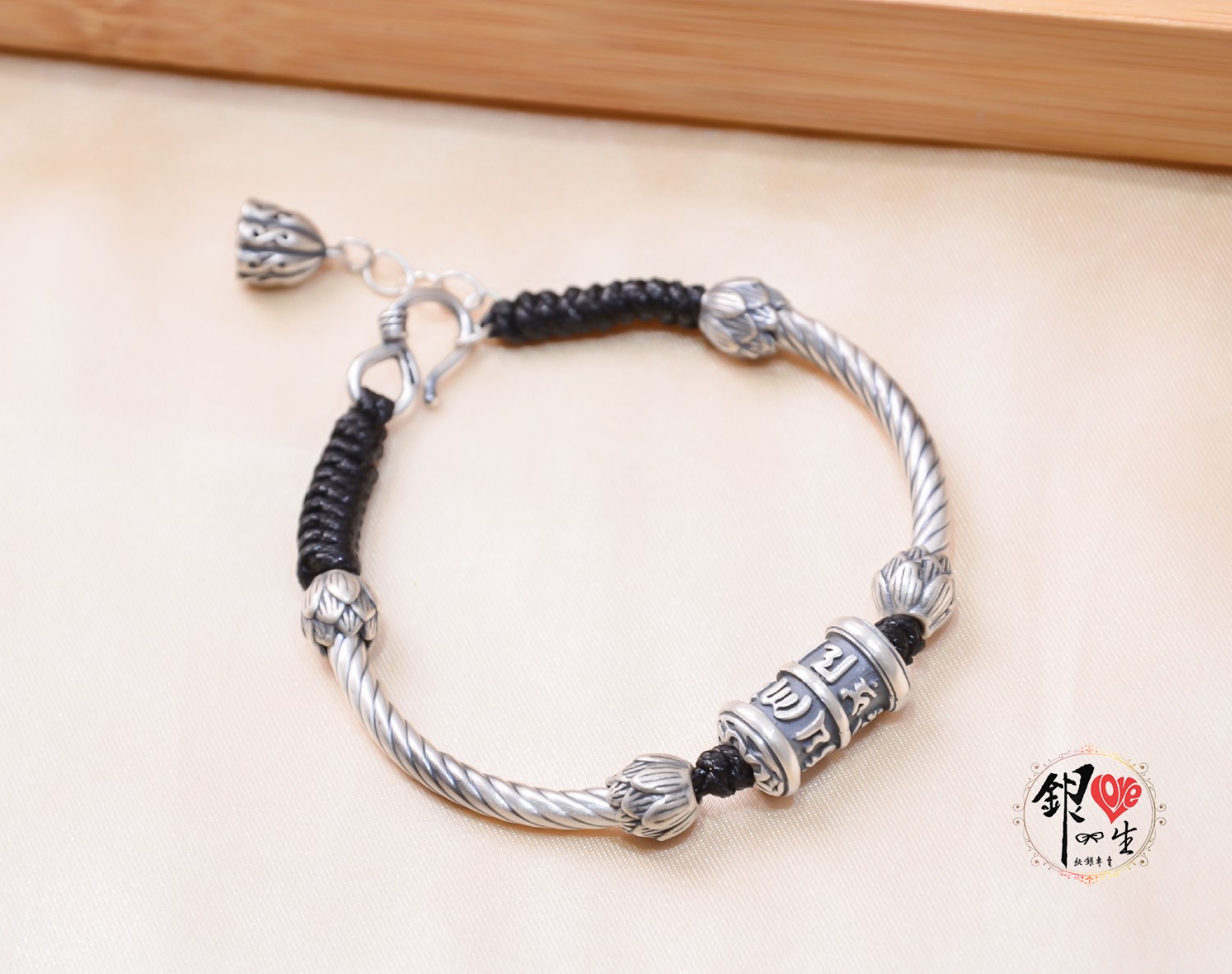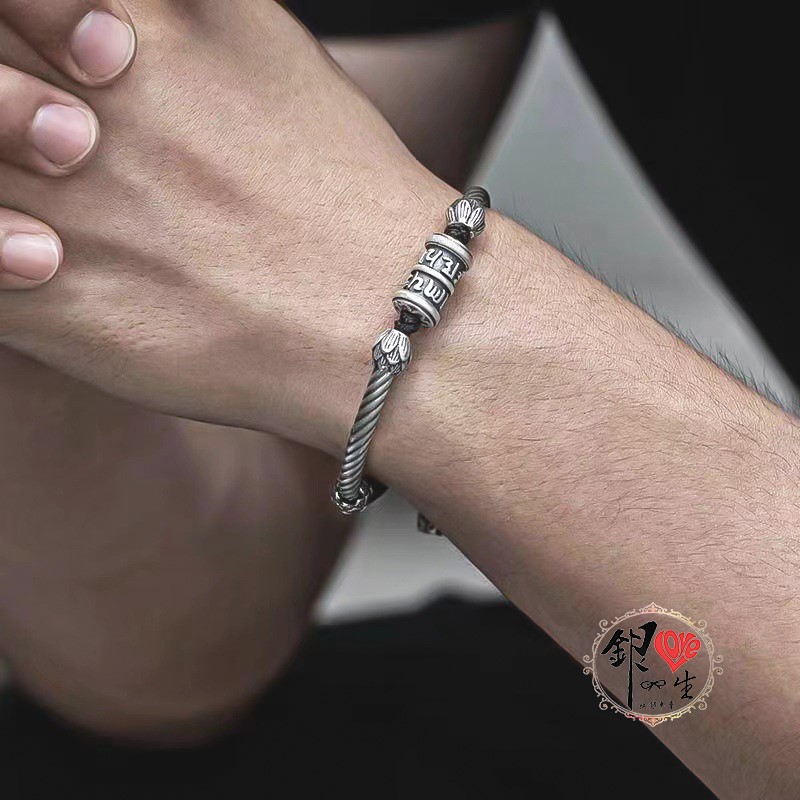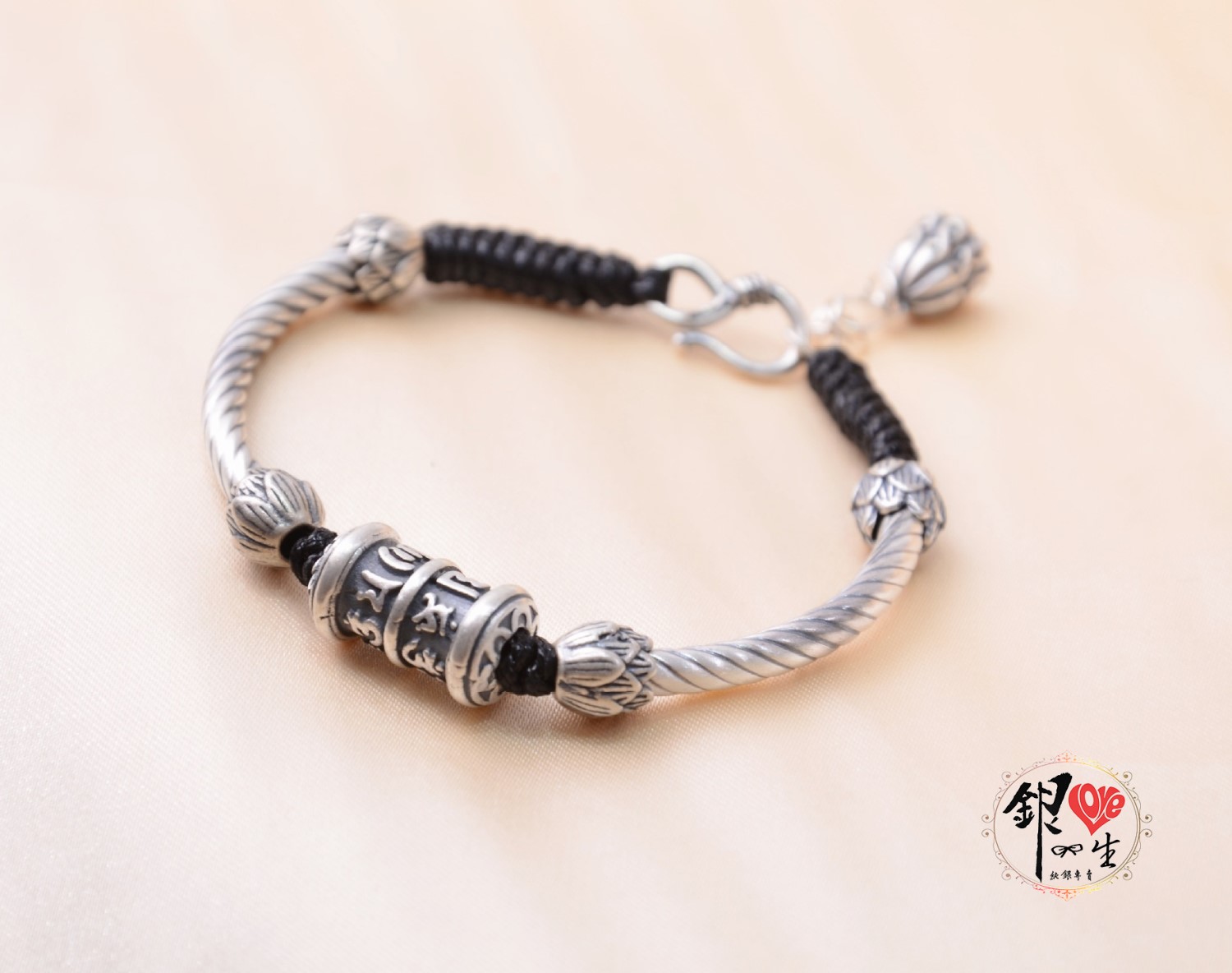 商品名稱 : 銀愛一生925純銀 復古 復古轉經筒 六字箴言 男女 手鍊 • 亮面拋光,細緻光滑,金屬部分皆為925純銀,敏感肌膚均可安心,配戴舒適 • 可免費升級為精緻禮盒 (附加產品保證書)